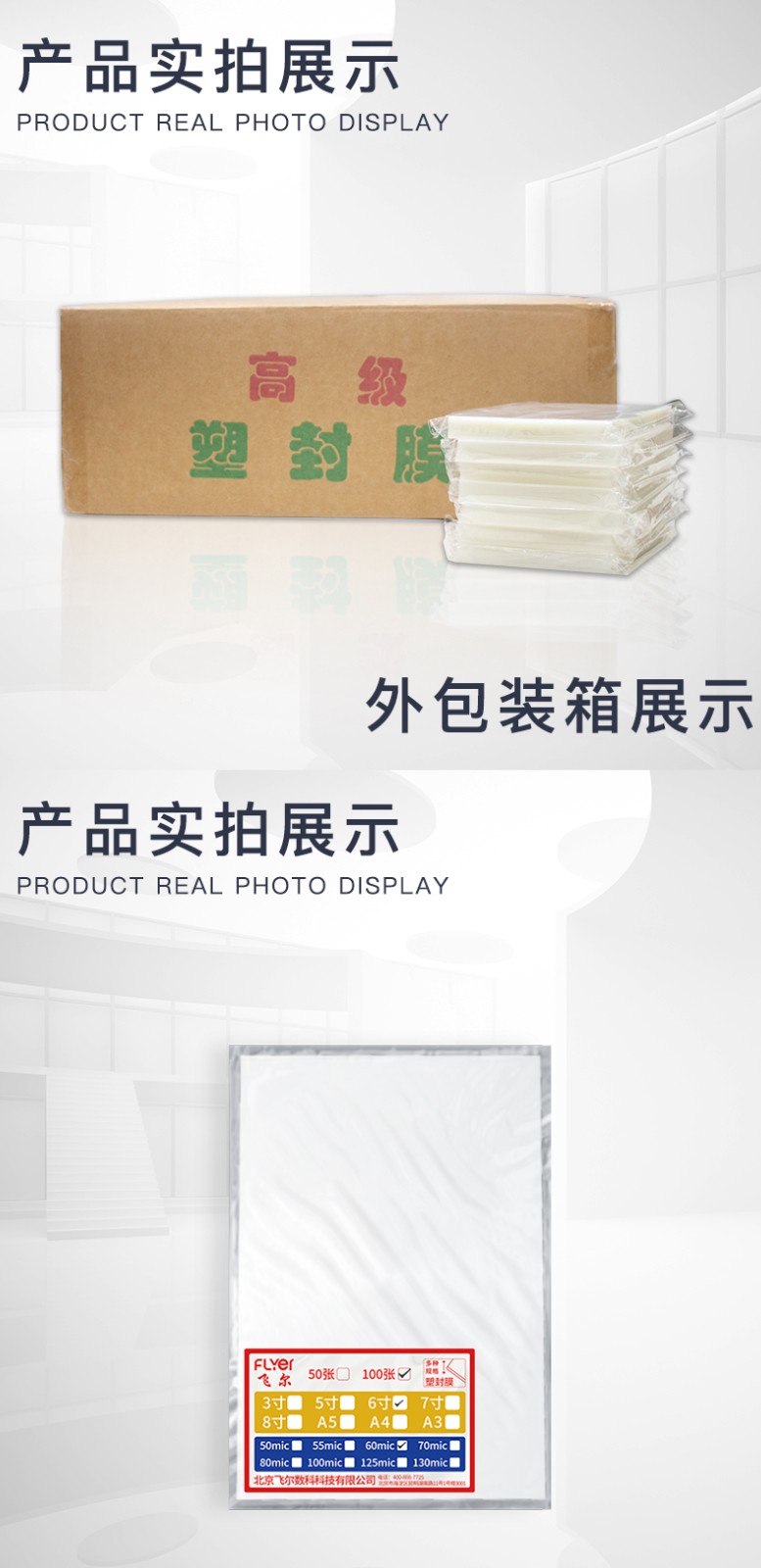 飞尔 塑封膜 照片过塑膜封塑膜 菜单热塑膜 文件过胶纸 树叶标本护卡膜 证件塑封机过塑纸覆膜纸 60min 6寸 100张/包 100包/箱 自营