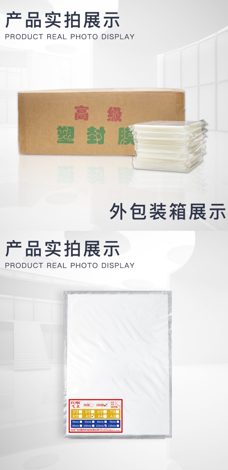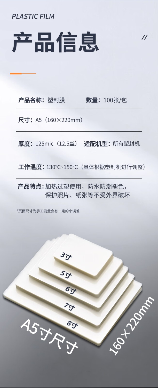 飞尔 塑封膜 照片过塑膜封塑膜 菜单热塑膜 文件过胶纸 树叶标本护卡膜 证件塑封机过塑纸覆膜纸 125min A5 100张/包 自营