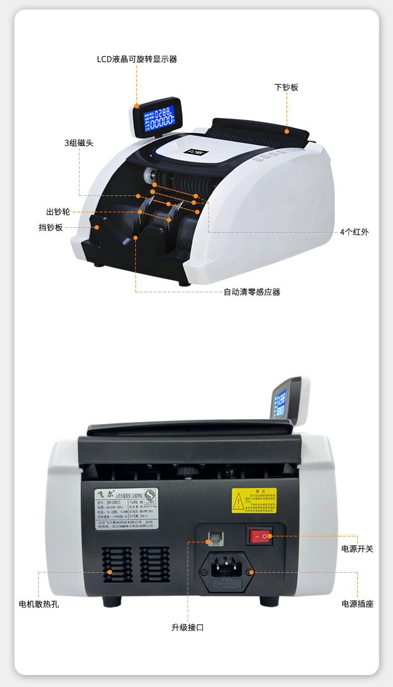 飞尔 点验钞机 支持新版人民币软件升级 商用家用财务会计收银液晶显示屏 语音点钱机 国标C类 FL0288C 自营
