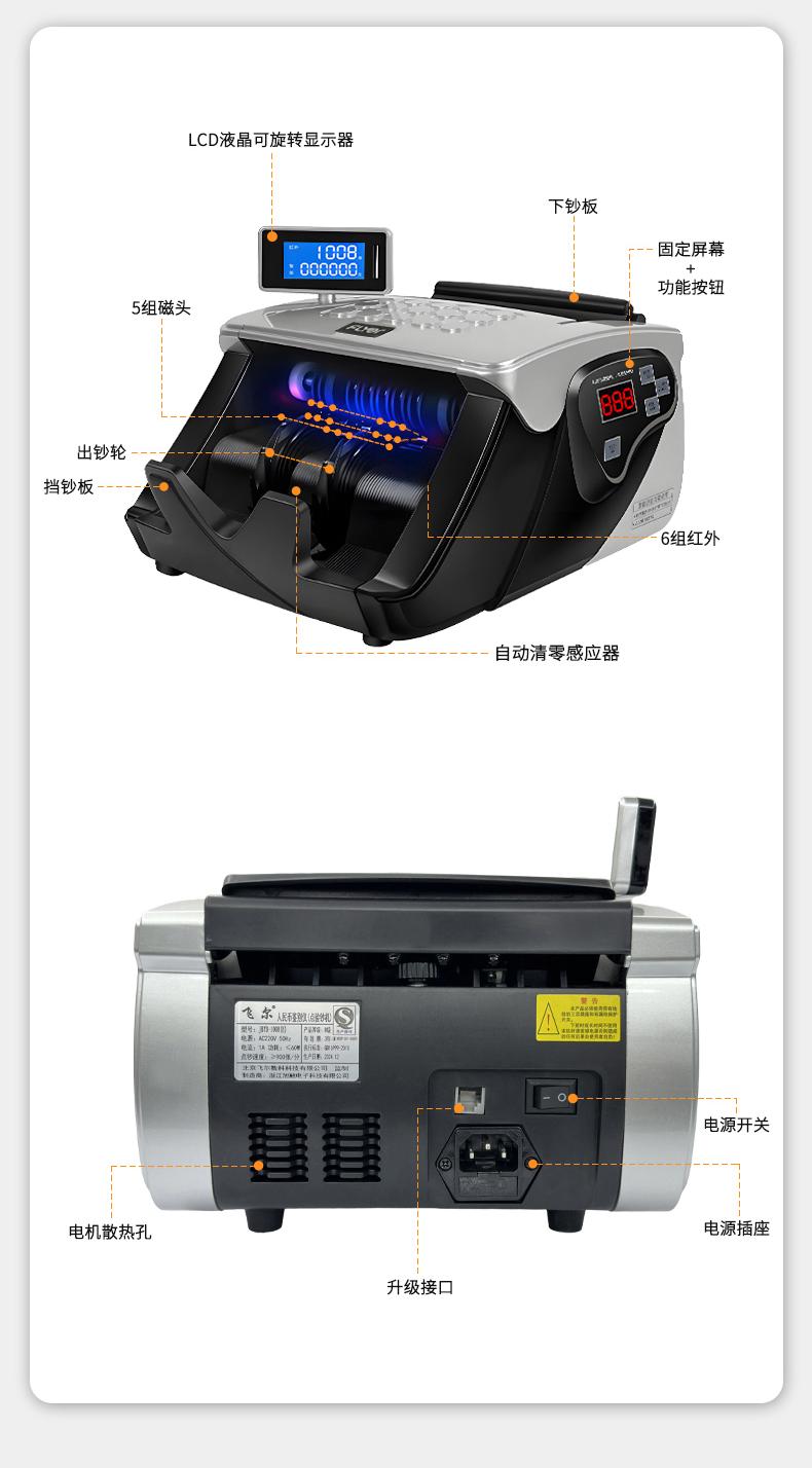 飞尔 点验钞机 支持新版人民币软件升级 商用家用财务会计收银 双显示屏语音点钱机 国标B类 FL1008B 自营