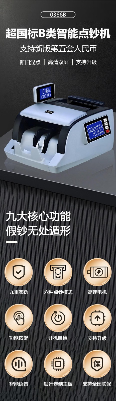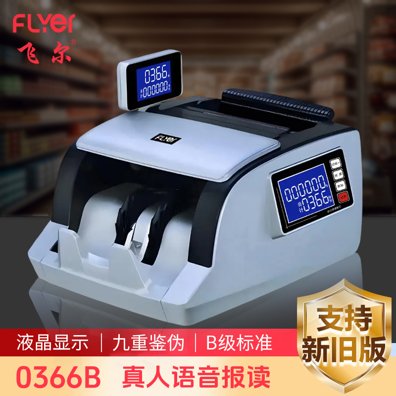 飞尔 点验钞机 支持新版人民币软件升级 商用家用财务会计收银 双显示屏语音点钱机 国标B类 FL0366B 自营