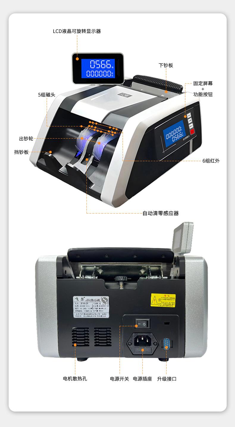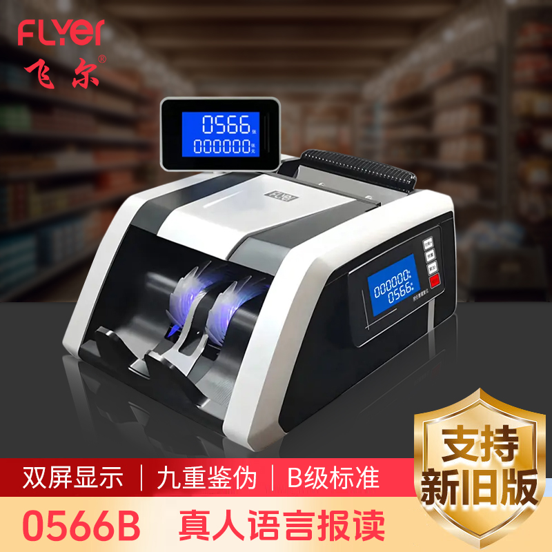 飞尔 点验钞机 支持新版人民币软件升级 商用家用财务会计收银 双显示屏语音点钱机 国标B类 FL0566B 自营