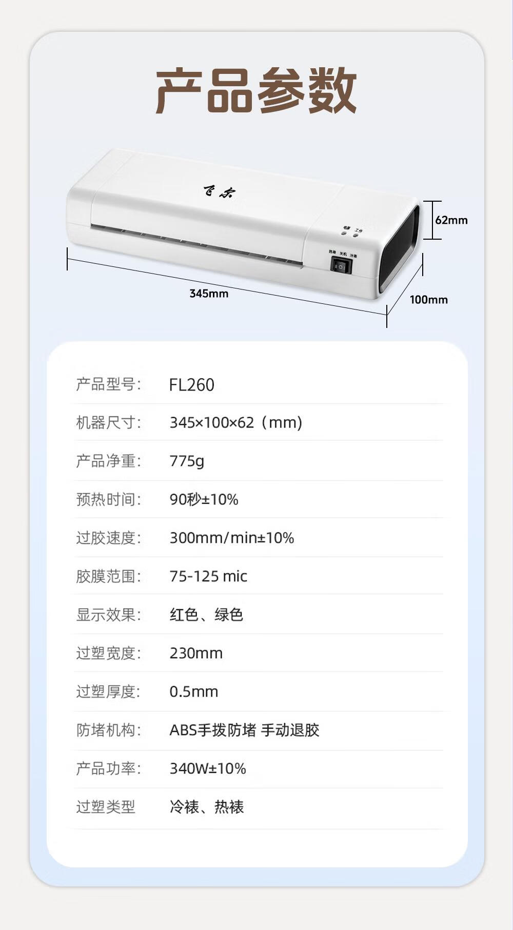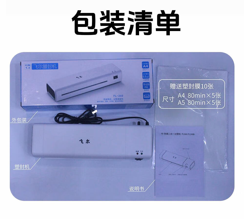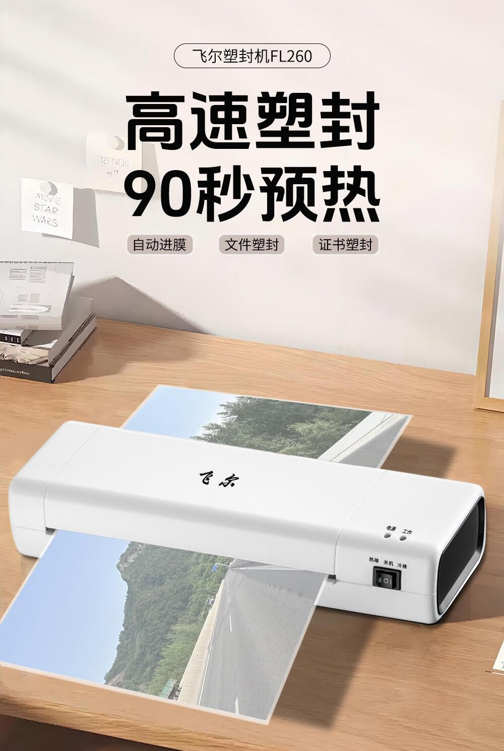 飞尔 塑封机 A4照片身份证过塑机 家用相片过胶机 商用办公图片热裱机冷裱机覆膜机封塑机 FL260 自营