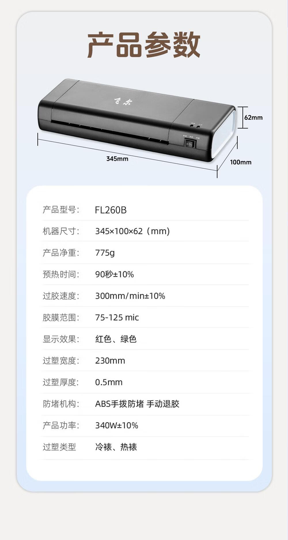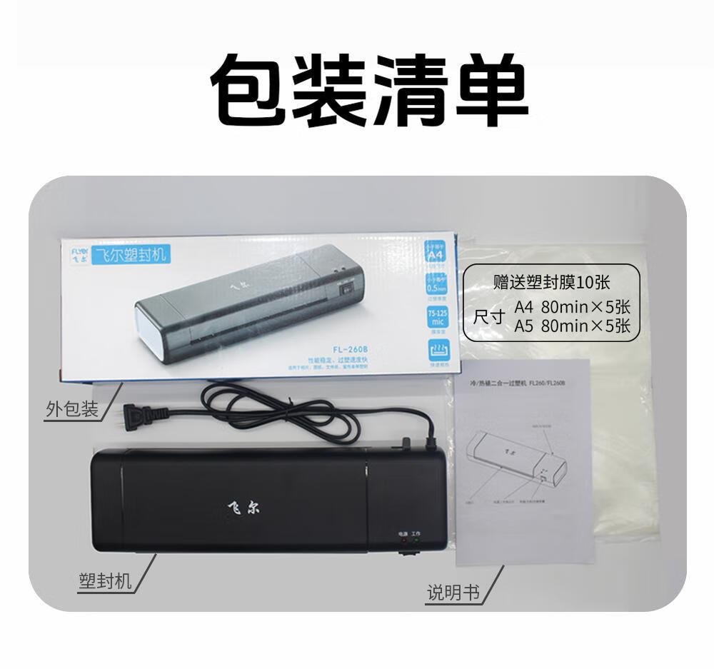飞尔 塑封机 A4照片身份证过塑机 家用相片过胶机 商用办公图片热裱机冷裱机覆膜机封塑机 FL260B 自营