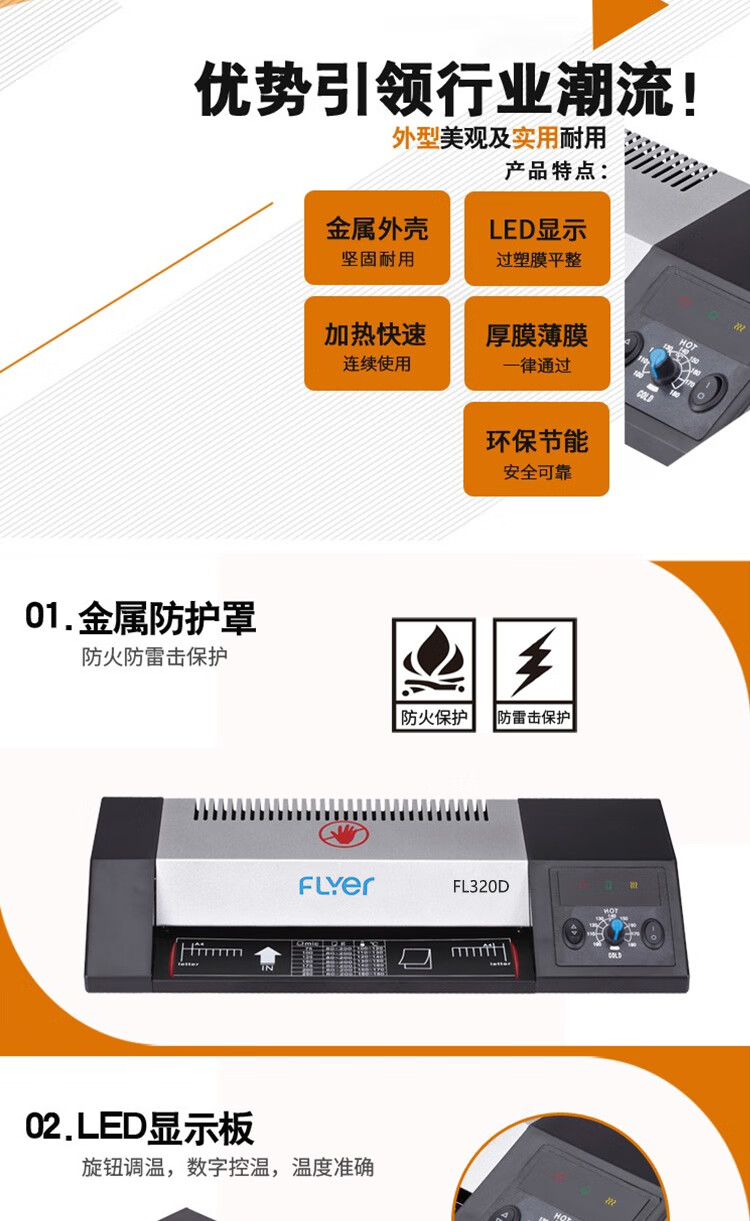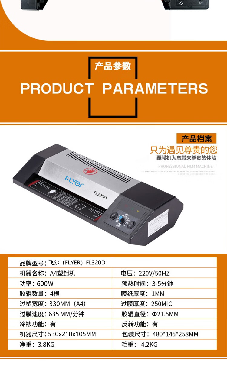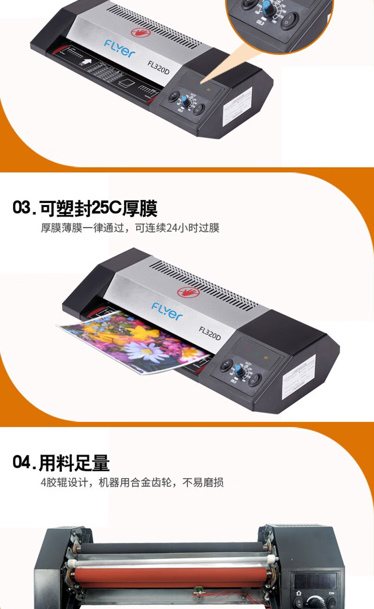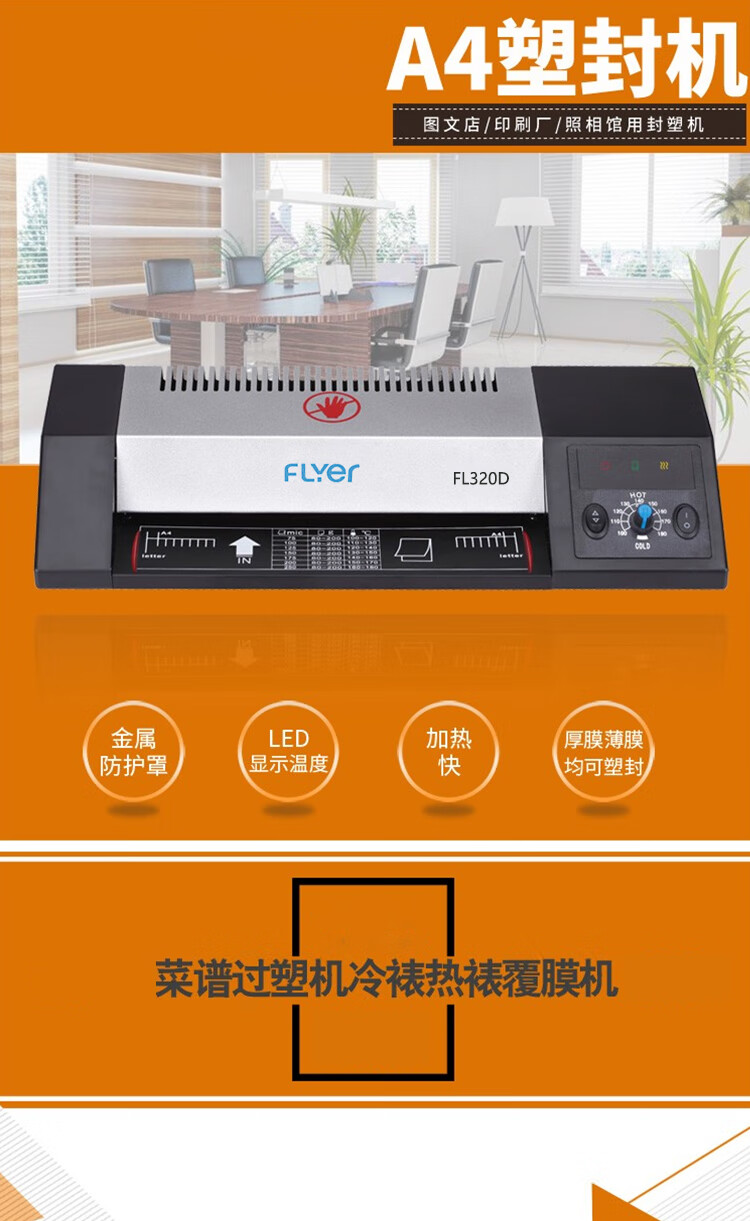 飞尔 塑封机 A3/A4照片身份证过塑机 家用相片过胶机 商用办公图片热裱机冷裱机覆膜机封塑机 FL320D 自营