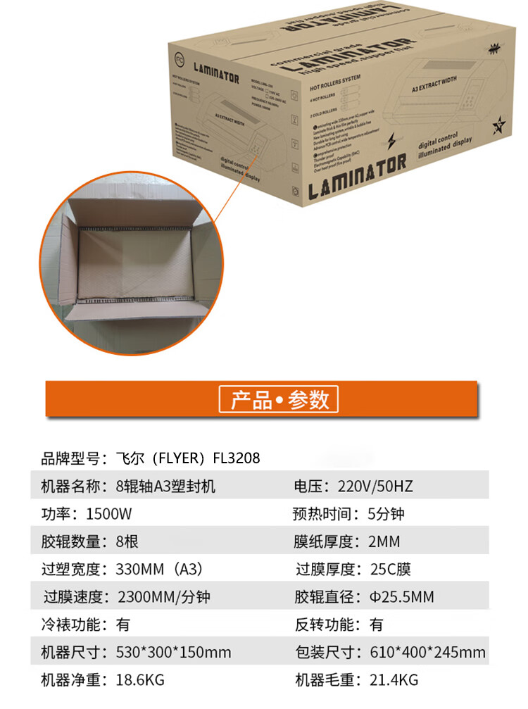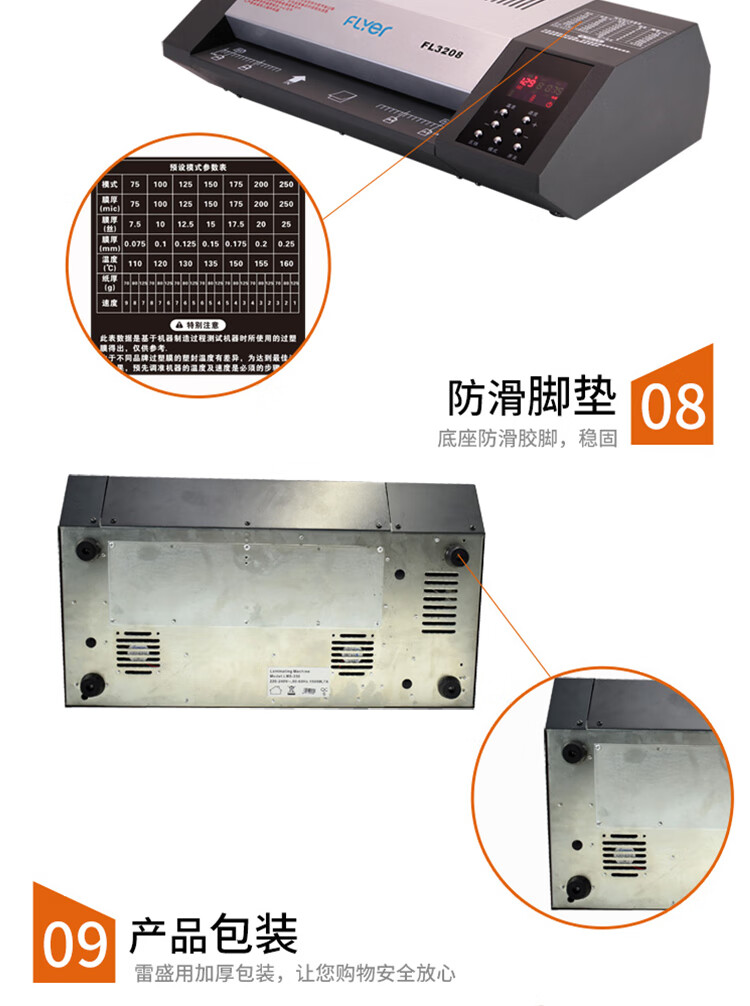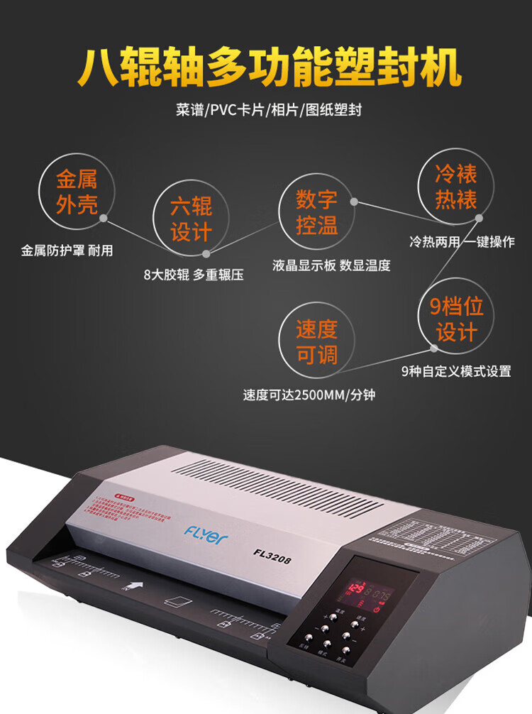 飞尔 塑封机 A3/A4照片身份证8辊调速过塑机相片过胶机 商用办公图片护照行驶证驾照覆膜封塑机 FL3208 自营
