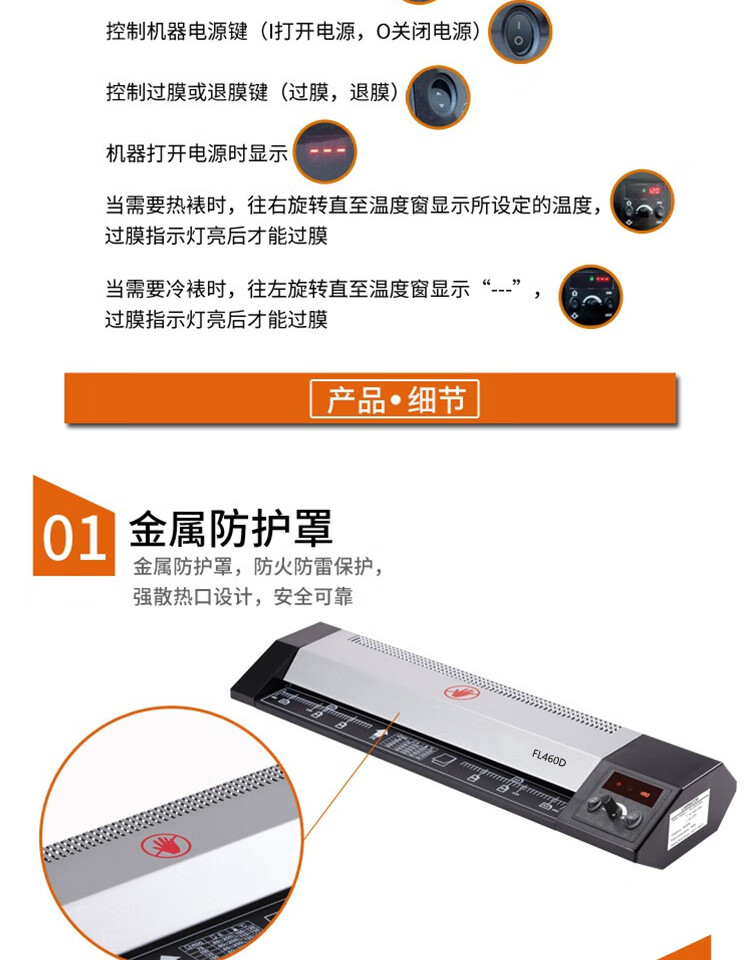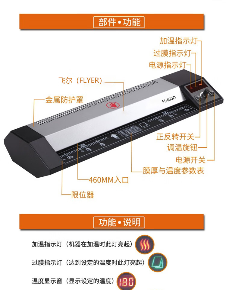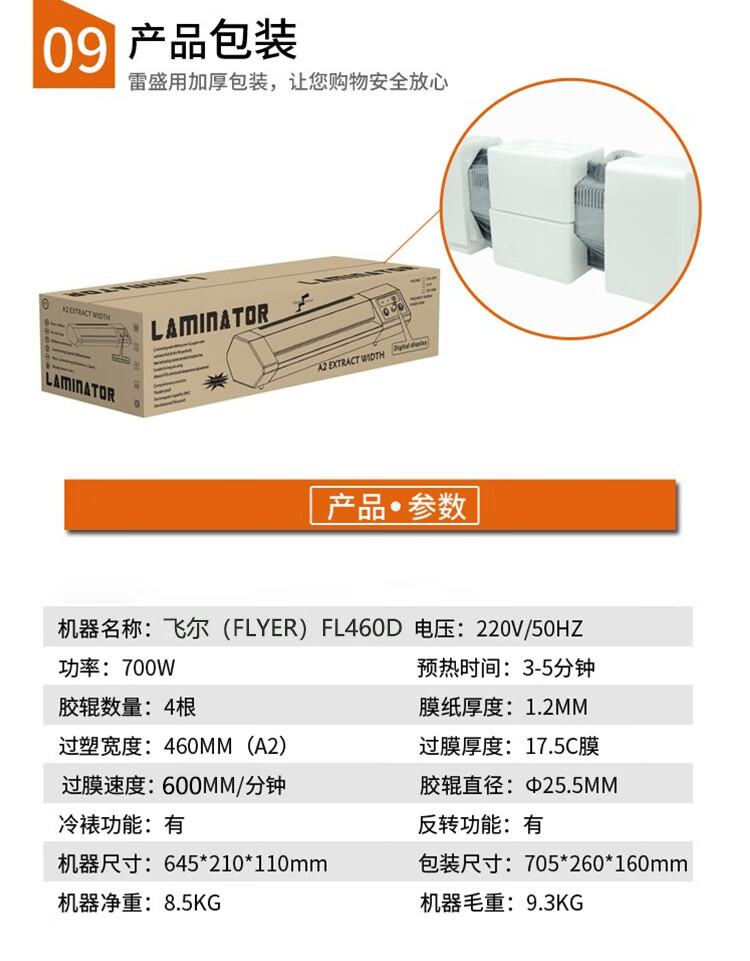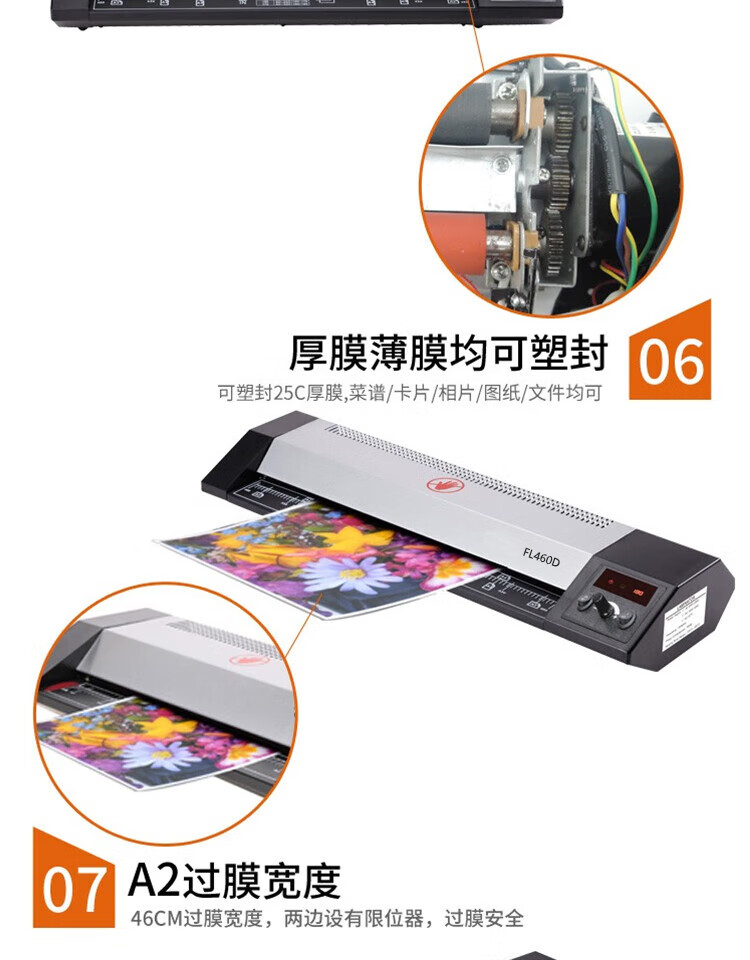 飞尔 塑封机 A2/A3/A4超宽照片身份证过塑机相片过胶机 商用办公图片热裱机冷裱机覆膜机封塑机 FL460D 自营