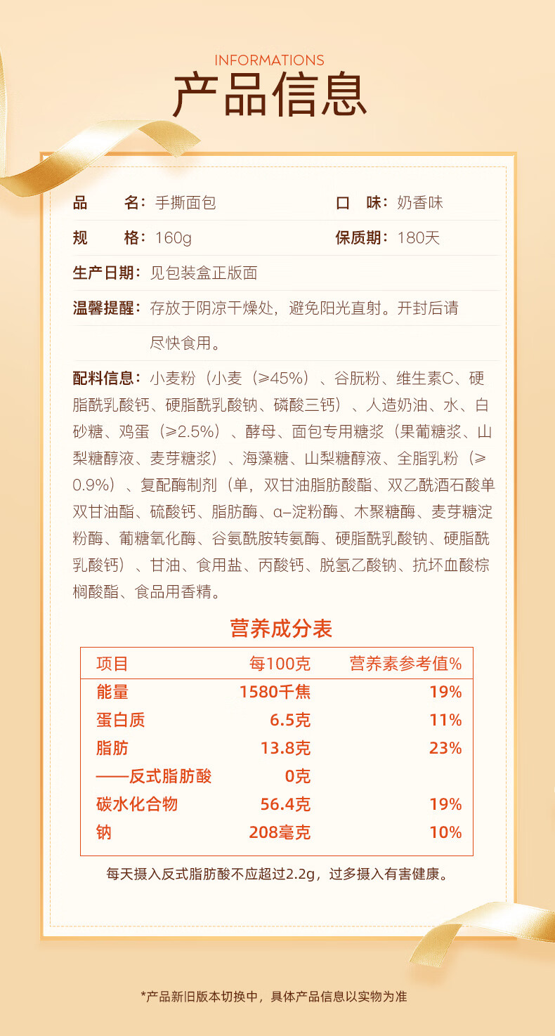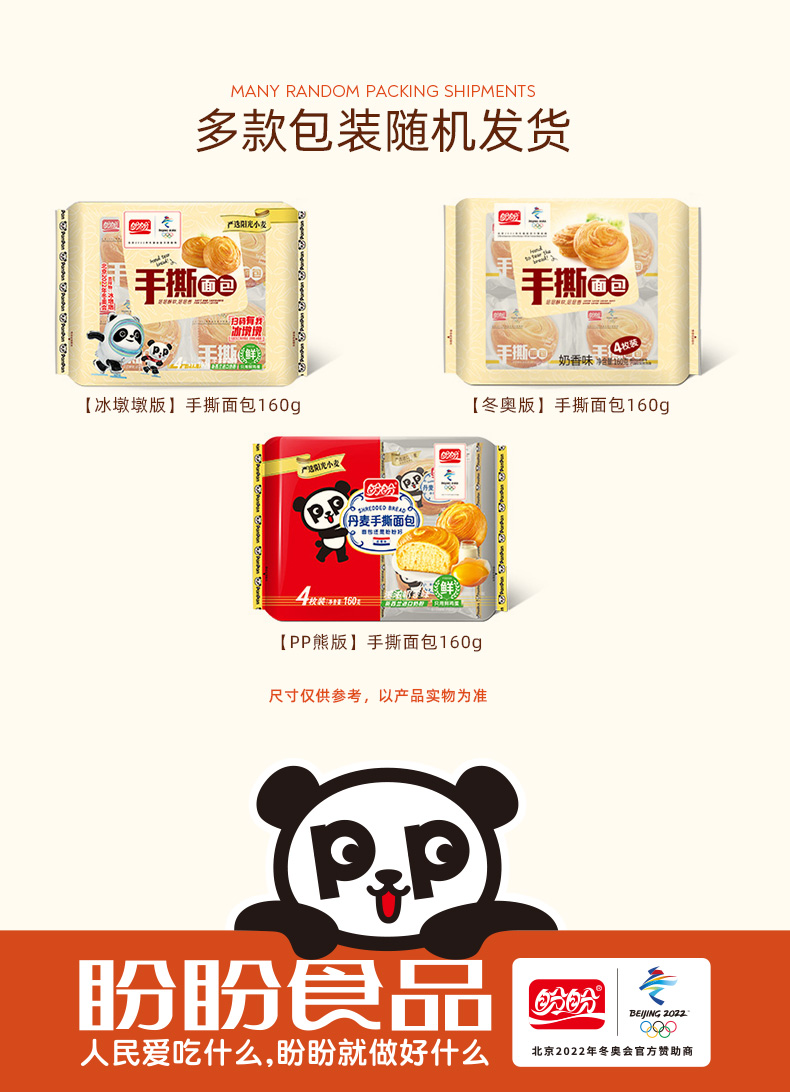 盼盼 手撕面包 营养早餐办公室下午茶点心 企业团购糕点零食 160g 3袋 自营