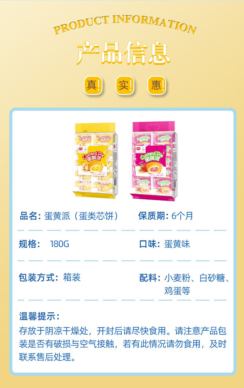 盼盼 蛋黄派 办公室下午茶点心 企业团购糕点零食 蛋黄味 180g 3袋 自营