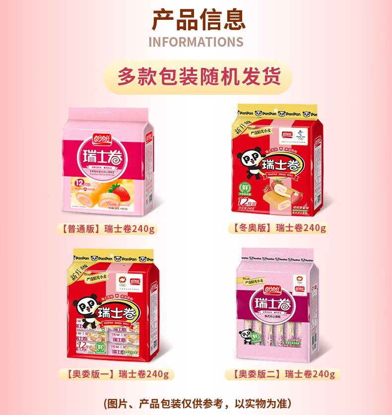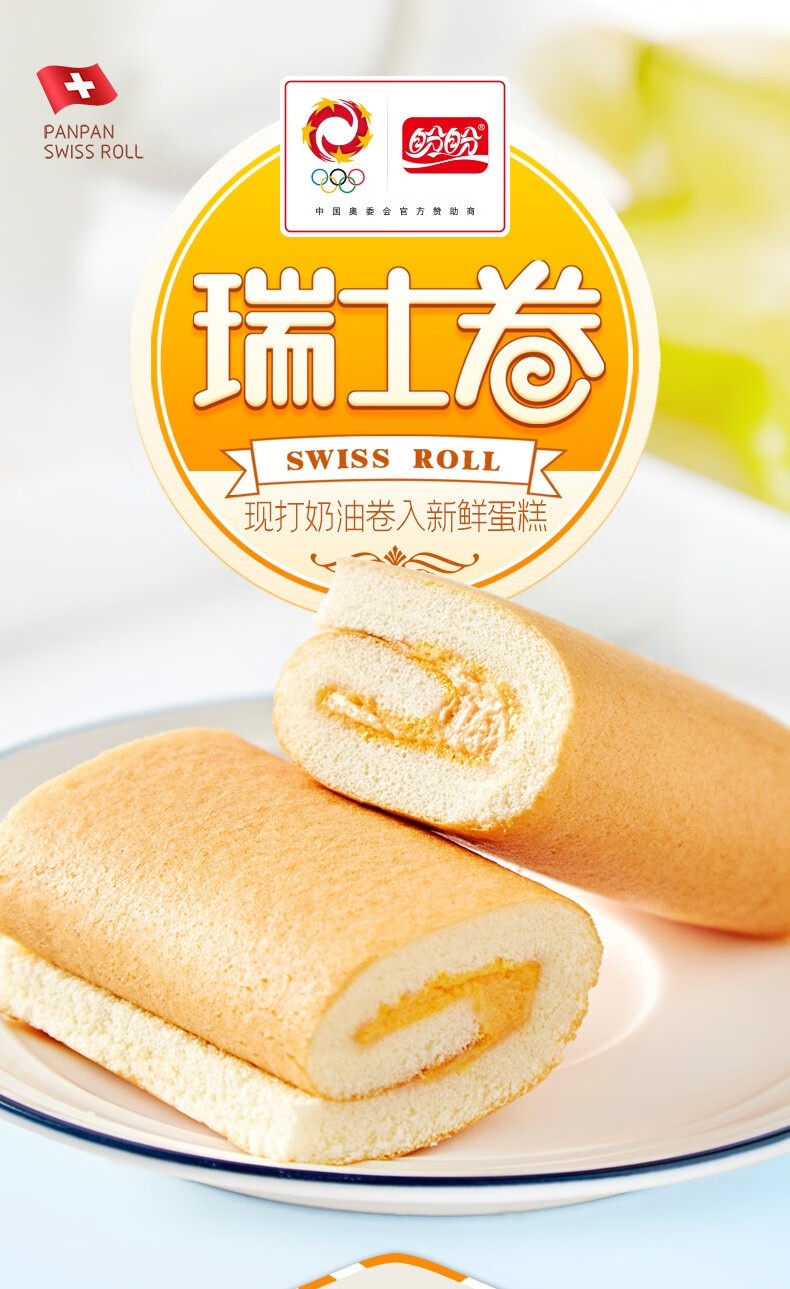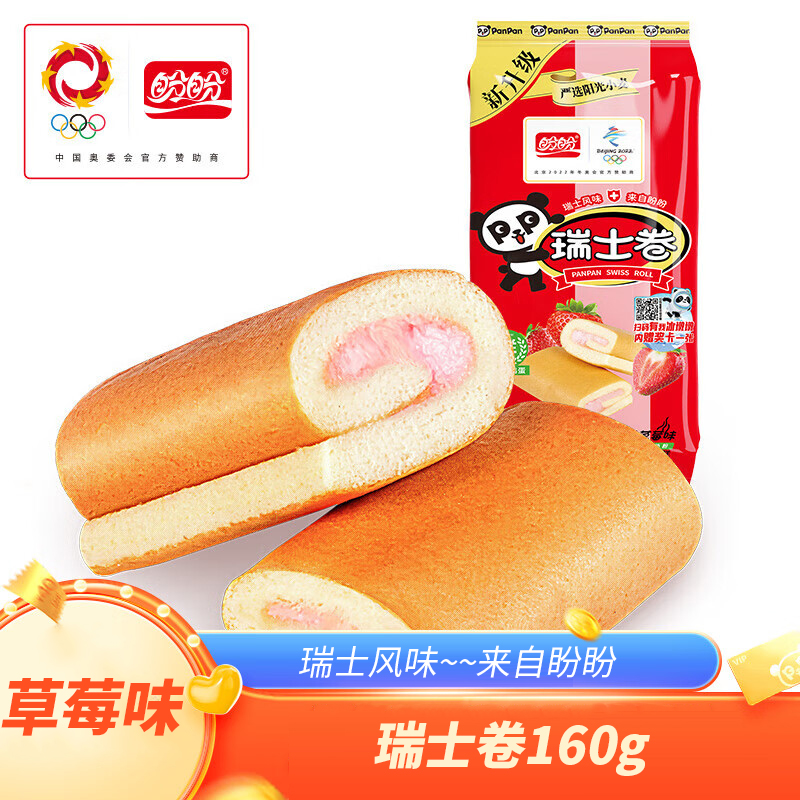 盼盼 瑞士卷 办公室下午茶点心 企业团购糕点零食 草莓味160g 3袋 自营
