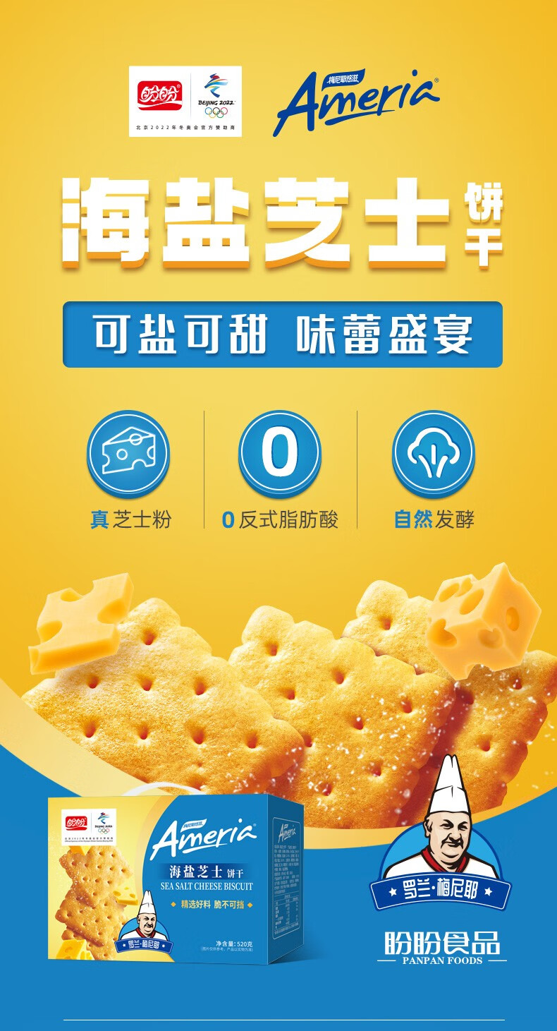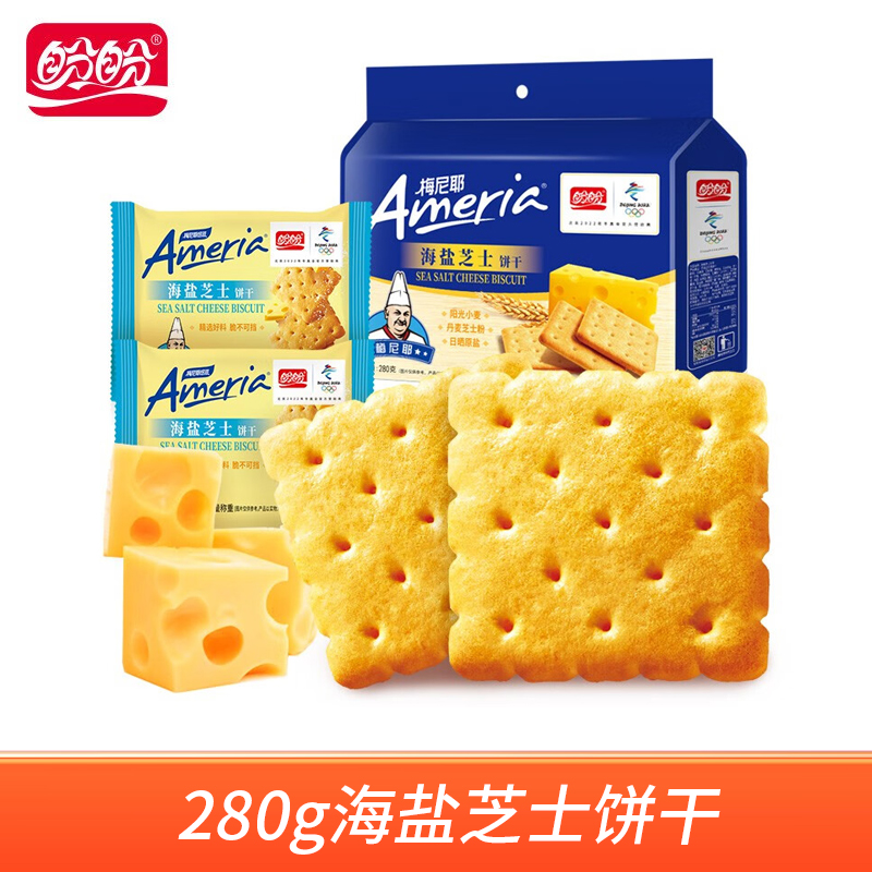 盼盼 海盐芝士饼干 办公室下午茶点心 企业团购糕点零食 280g 3盒 自营