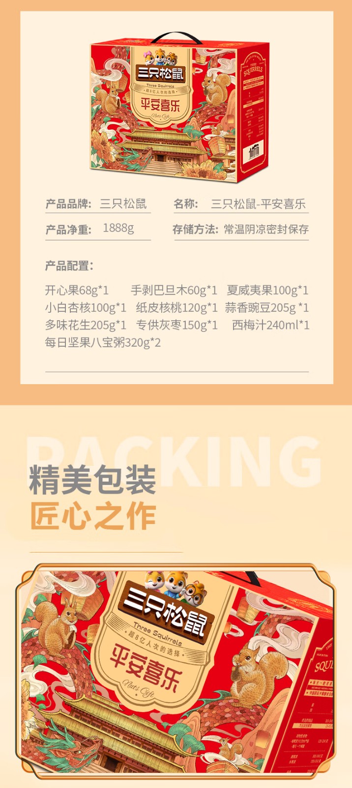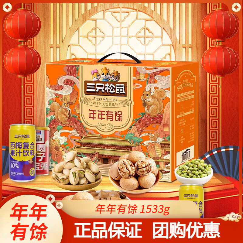三只松鼠 坚果礼盒-年年有余 坚果零食大礼包 企业团购节庆送礼 1533g 1盒 自营