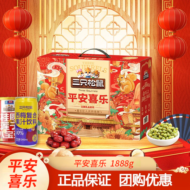 三只松鼠 坚果礼盒-平安喜乐 坚果零食大礼包 企业团购节庆送礼 1888g 1盒 自营