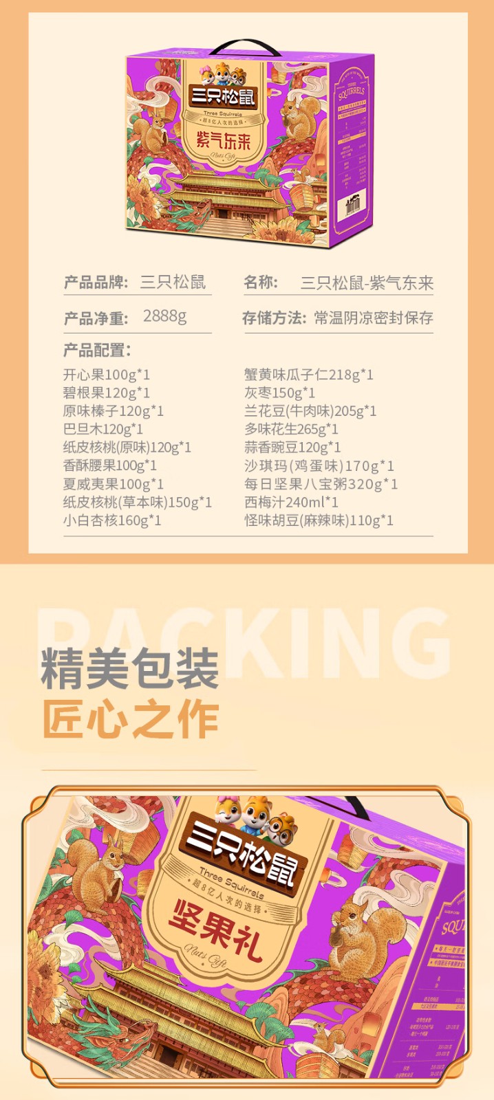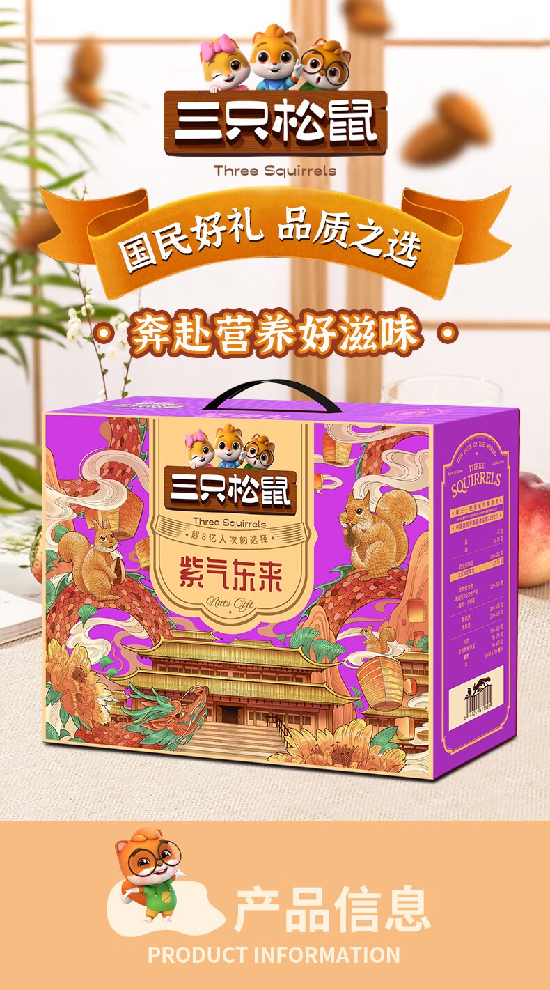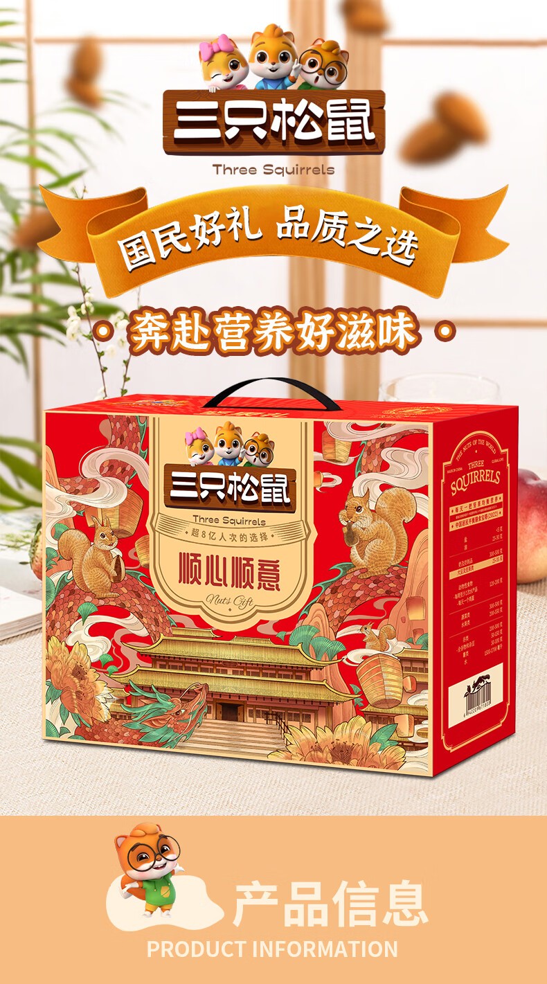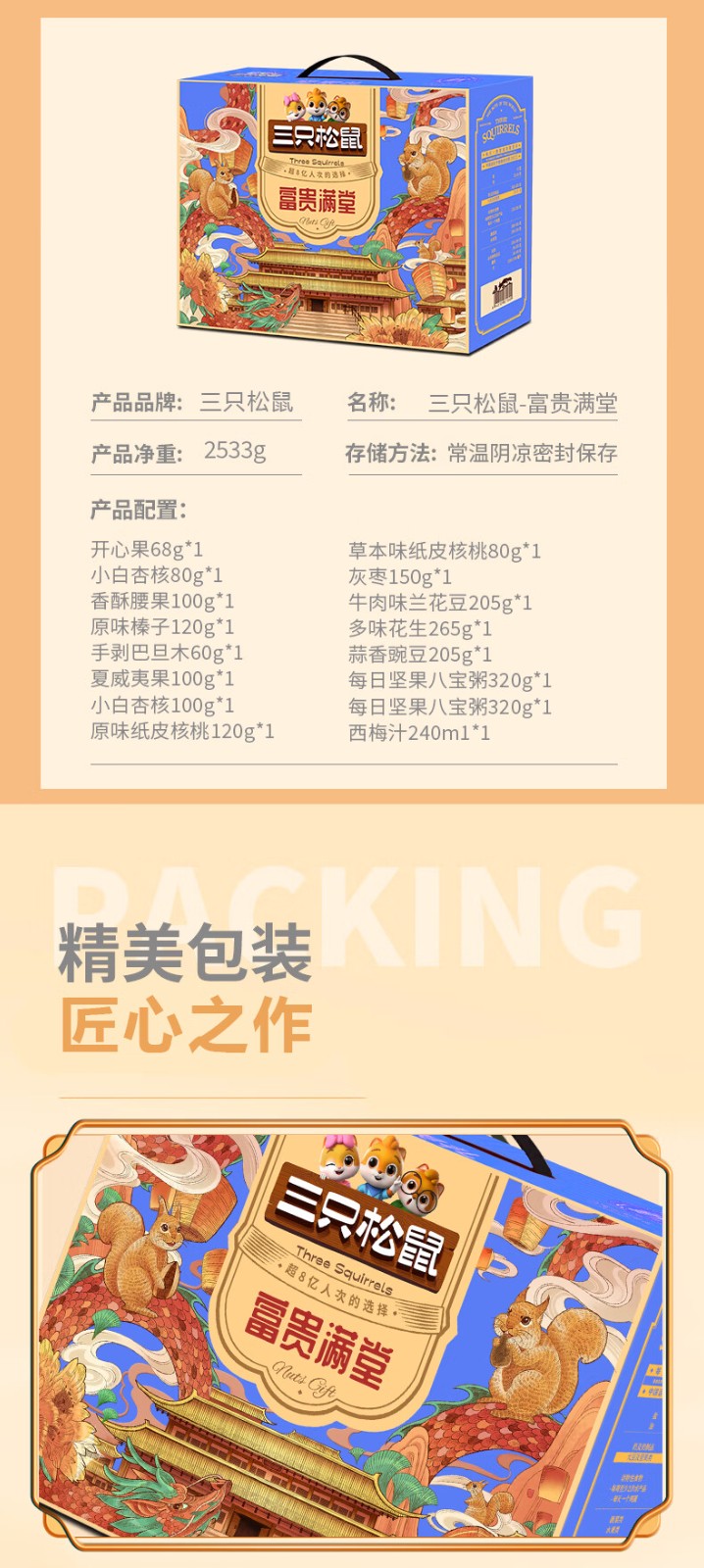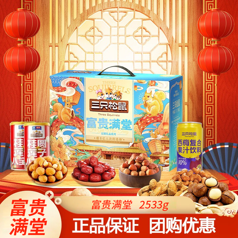 三只松鼠 坚果礼盒-富贵满堂 坚果零食大礼包 企业团购节庆送礼 2533g 1盒 自营