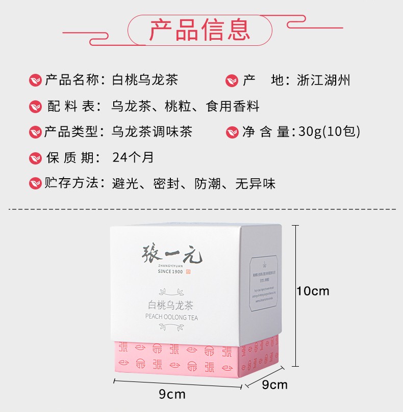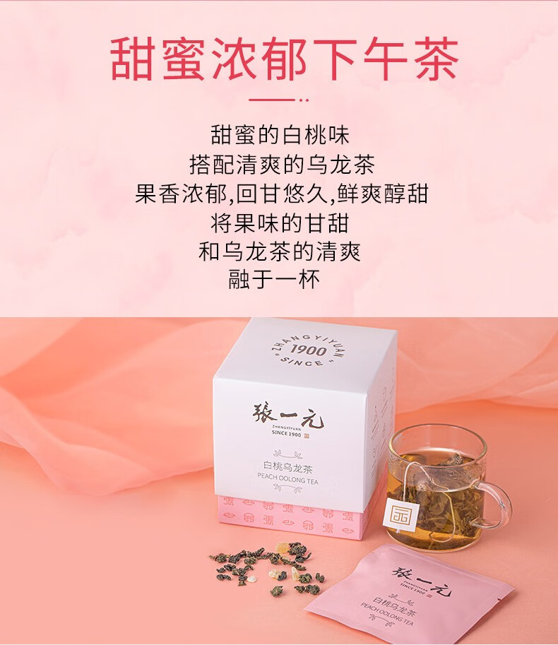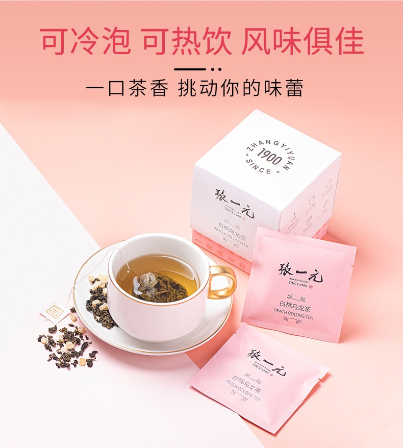 张一元 白桃味乌龙茶 中华老字号茗茶鲜醇 蜜桃乌龙调味冷泡茶 30g 1盒 自营