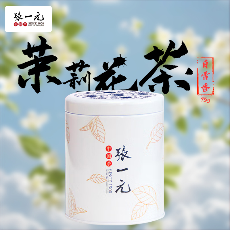 张一元 茉莉花茶 老字号茗茶鲜醇 中国元素特级茉莉花茶 白雪香 75g 1罐 自营