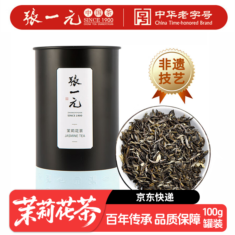 张一元 茉莉花茶 中华老字号茗茶鲜醇 尚品茉莉花茶 100g 1罐 自营