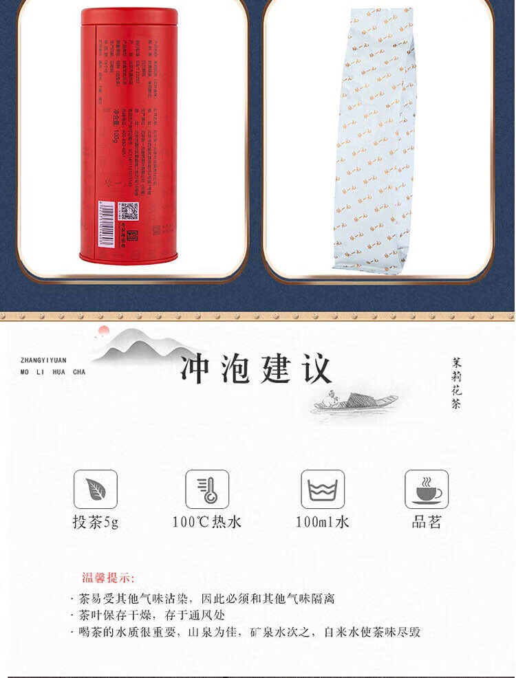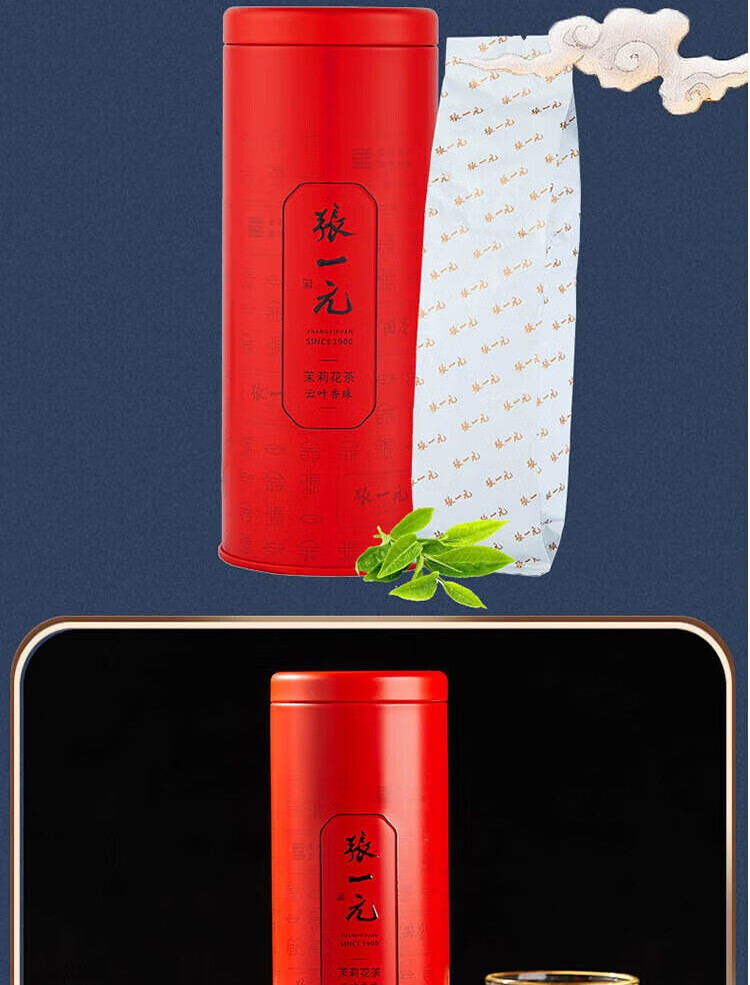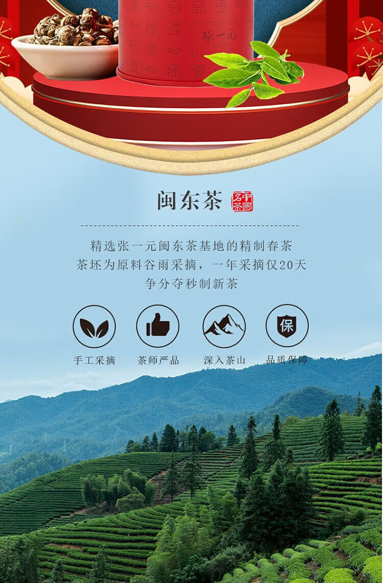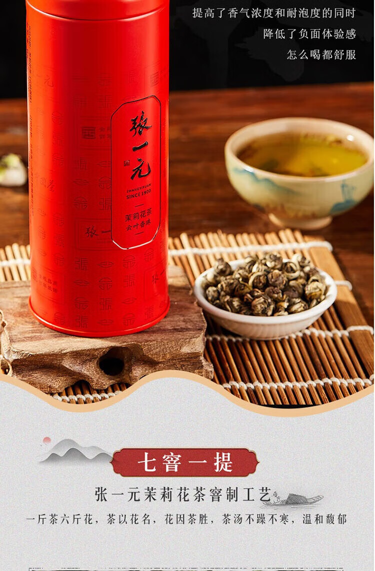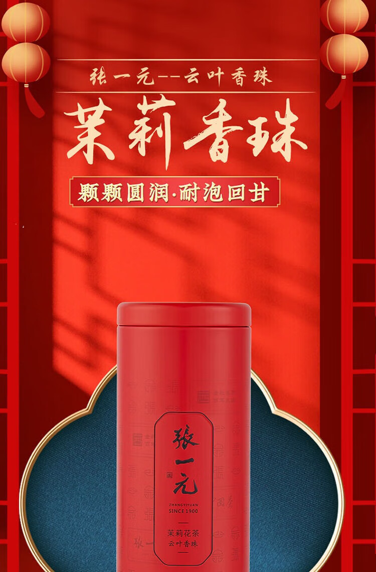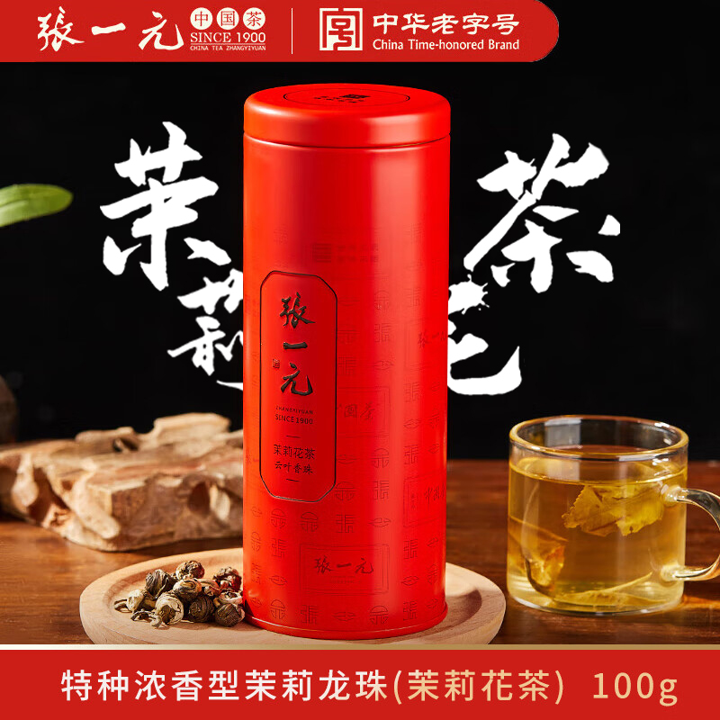 张一元 茉莉花茶 中华老字号茗茶鲜醇 茉莉花茶云叶香珠100g 1罐 自营