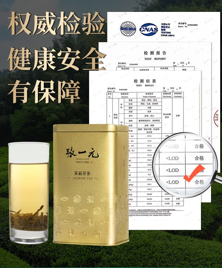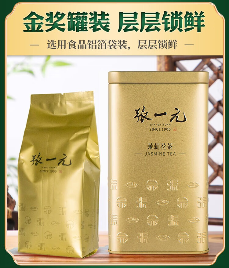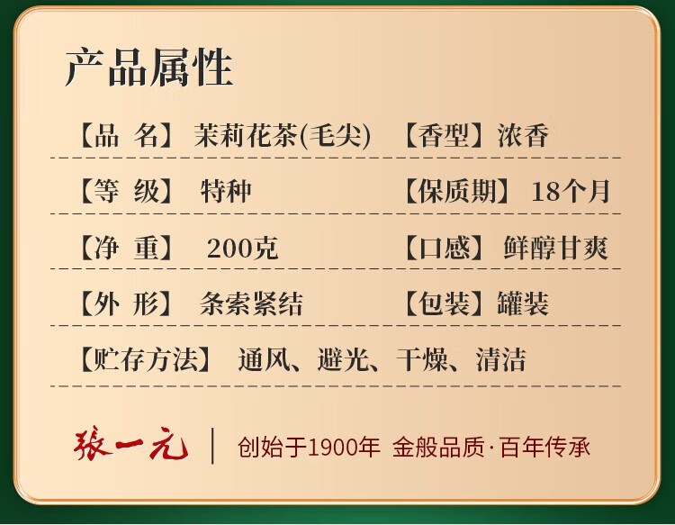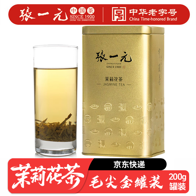 张一元 茉莉花茶 中华老字号茗茶鲜醇 茉莉花茶茉莉毛尖金罐装 200g 1罐 自营