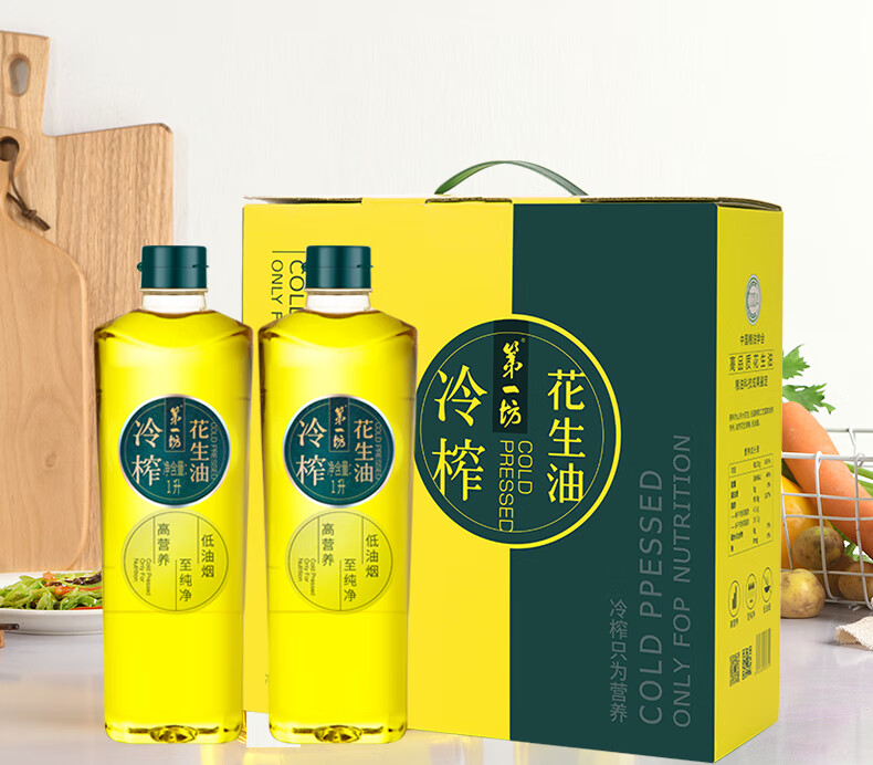 第一坊 冷榨花生油 食用油 冷榨工艺 1L×2瓶 礼盒装 自营