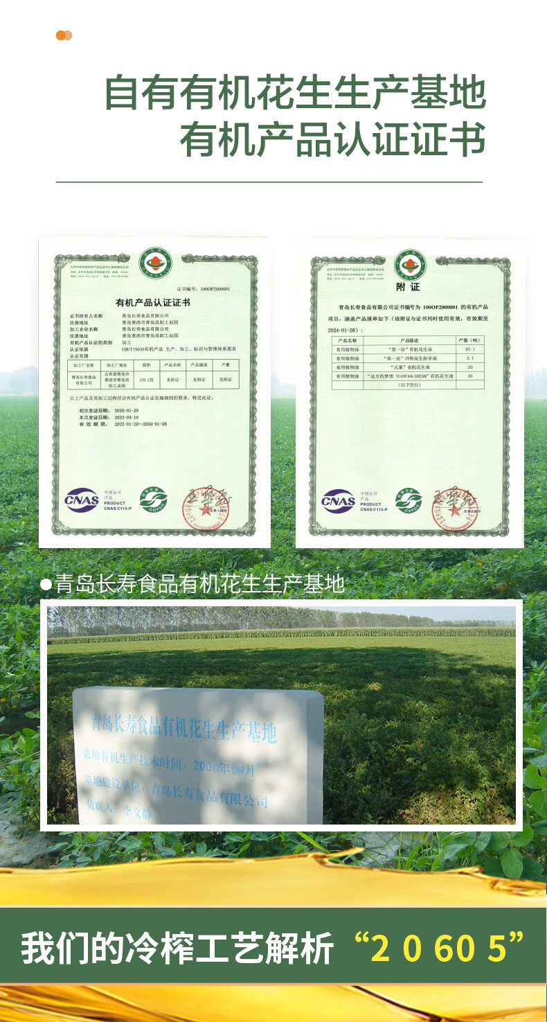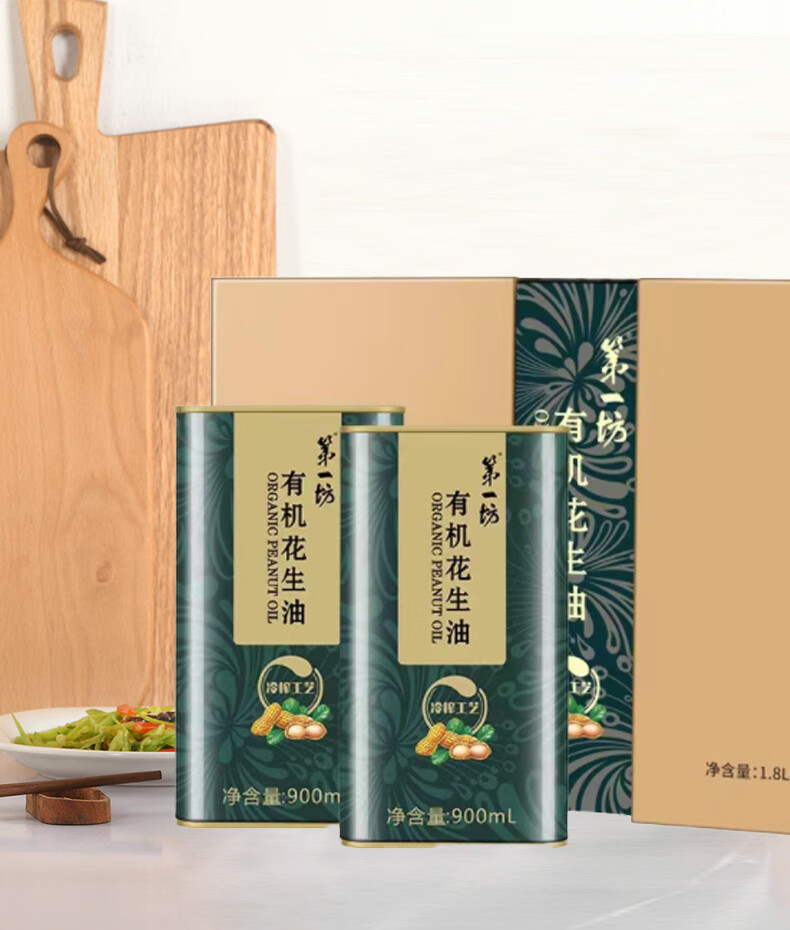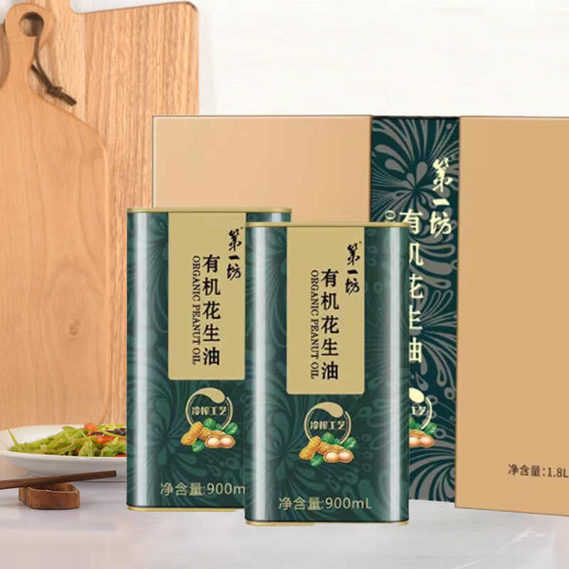 第一坊 有机冷榨花生油 食用油 冷榨工艺 900ml×2瓶 礼盒装 自营