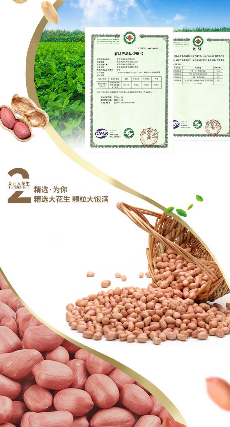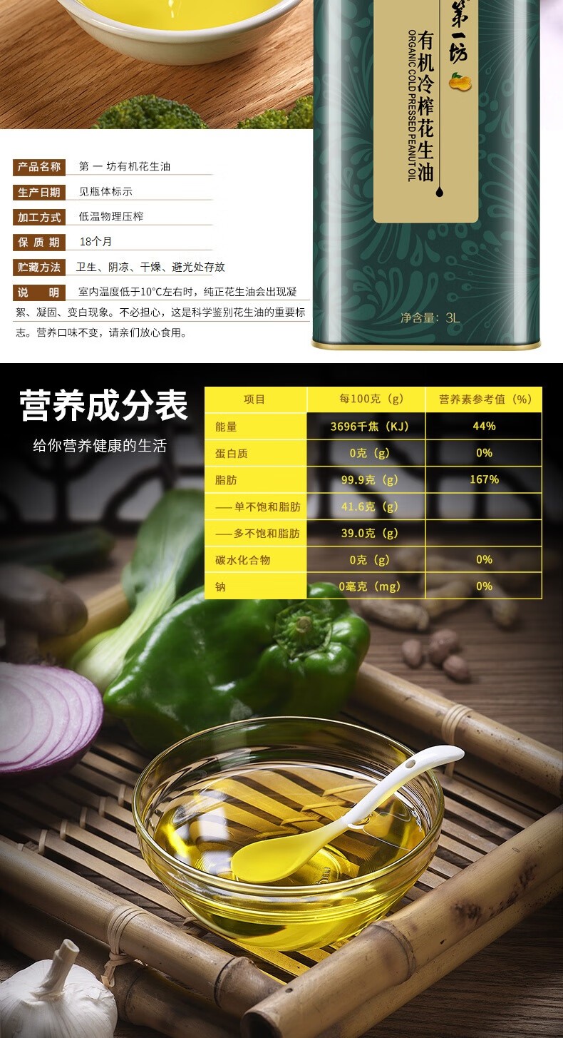 第一坊 有机冷榨花生油 食用油 冷榨工艺大桶装 3L 自营