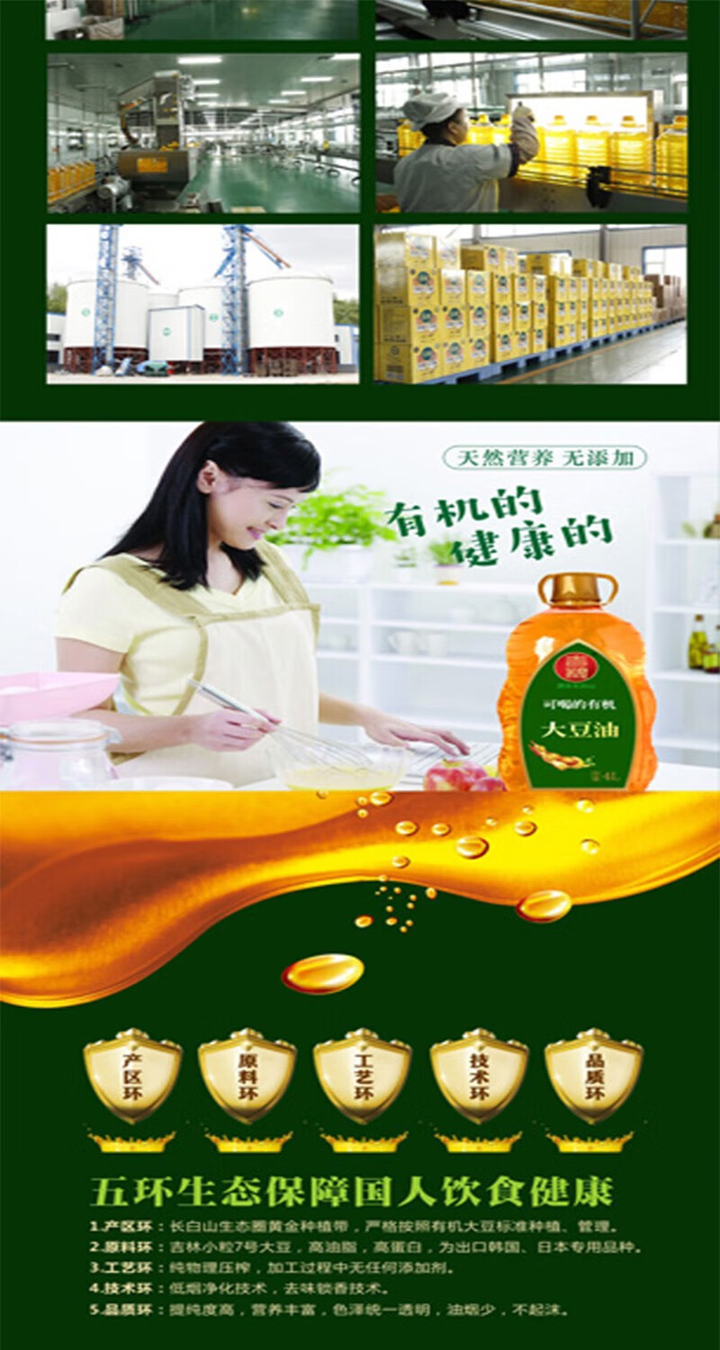 吉粮 有机非转基因大豆油 非转基因物理压榨原味零添加植物油 4L 自营