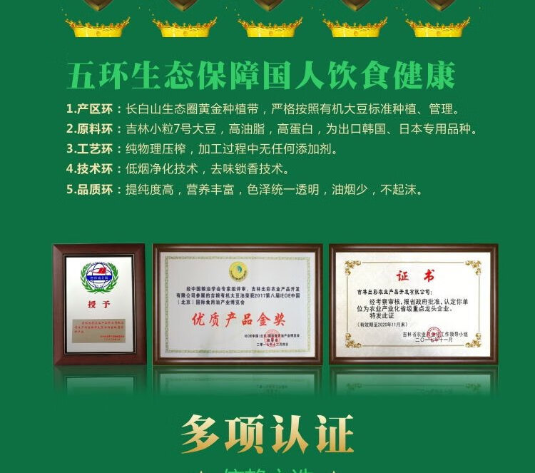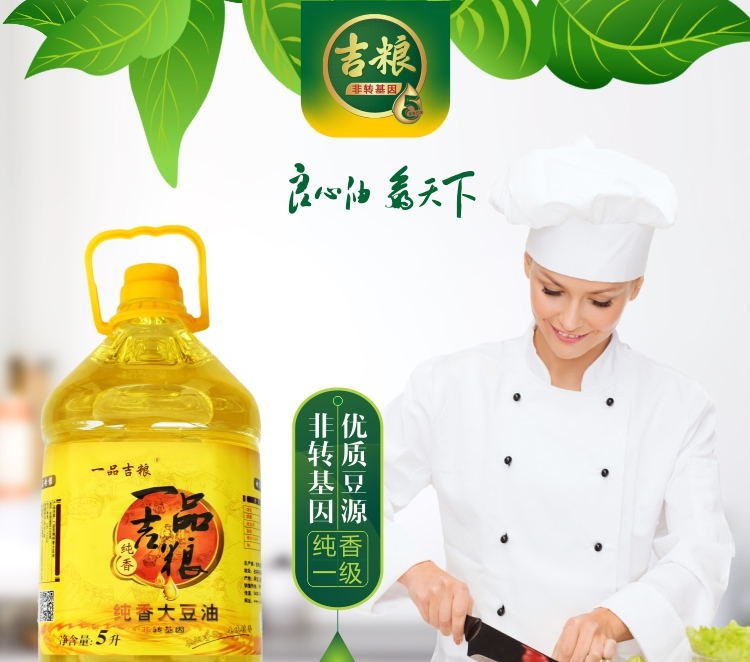 吉粮 物理压榨非转基因一级纯香大豆油 色拉油 煎炒烹炸 5L*2桶 自营