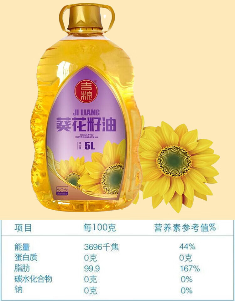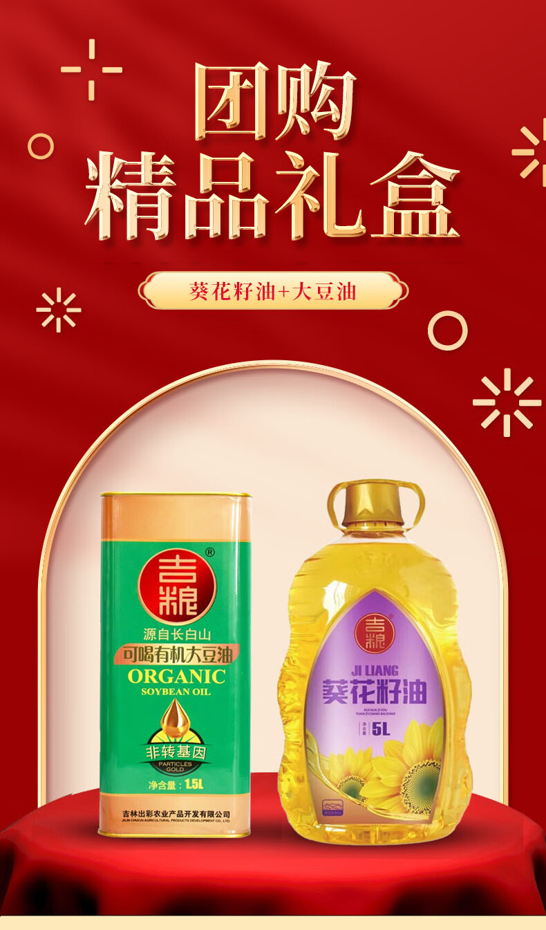 吉粮 物理压榨非转基因 大豆油1.5L+葵花籽一级油5L(1.5L+5L) 自营