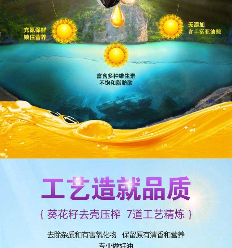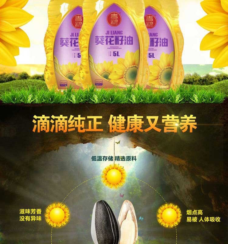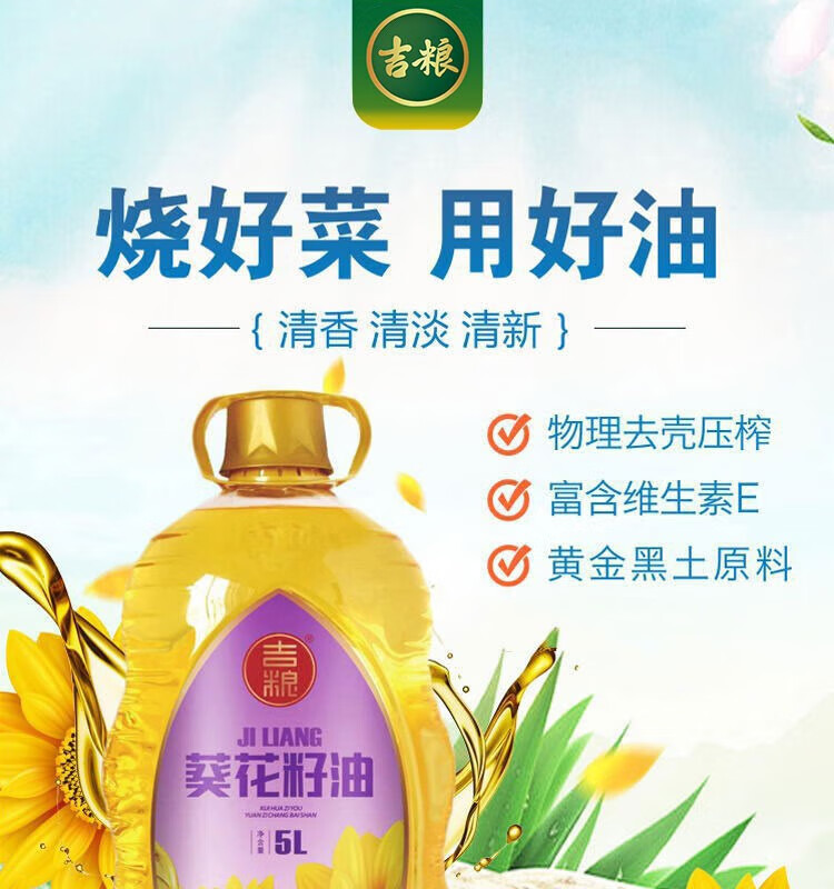 吉粮 葵花油 物理压榨油 一级葵花籽油瓜子油食用油炒菜油 5L 自营