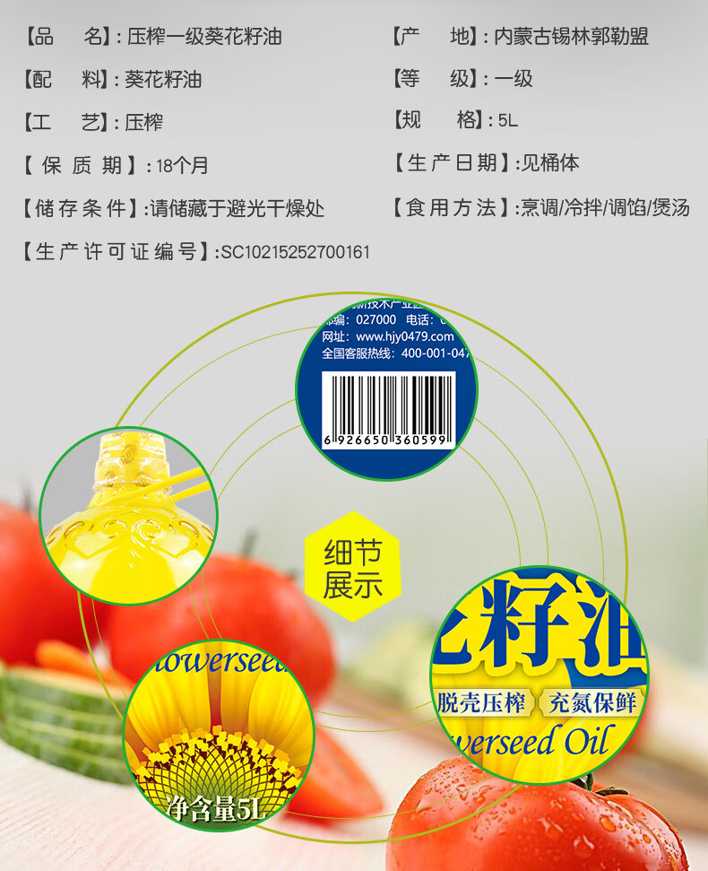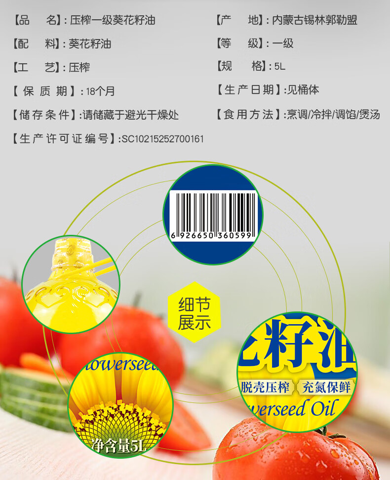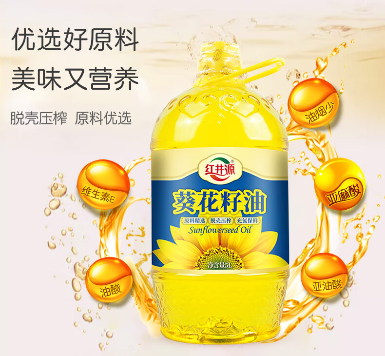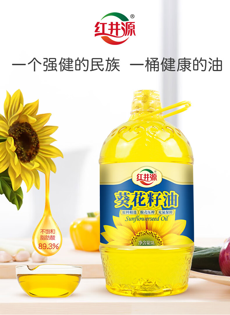 红井源 葵花籽油 食用油 家庭炒菜葵花籽油 葵花籽油5L 自营