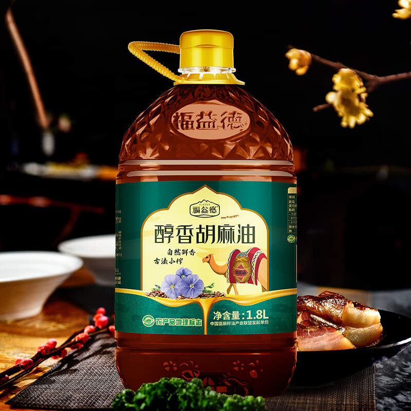福益德 醇香胡麻油 物理压榨纯亚麻籽油 山西胡麻油 食用油 1.8L×1桶 自营