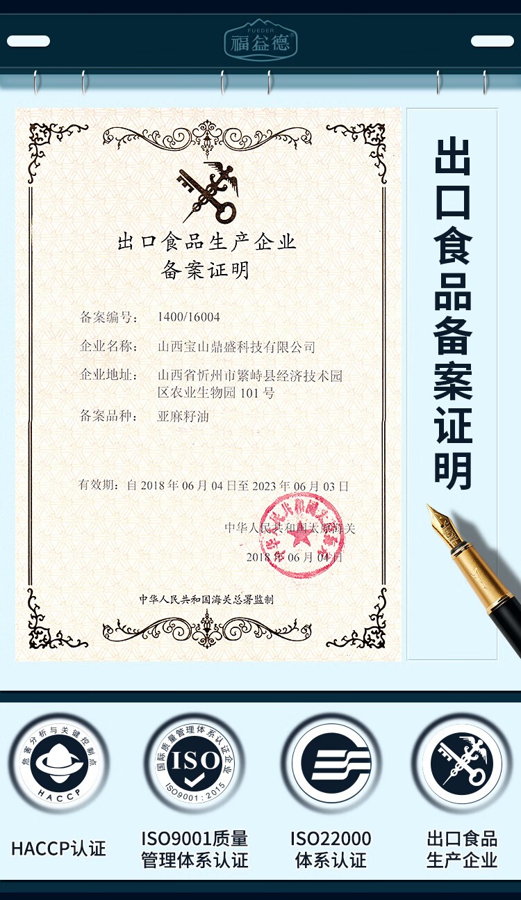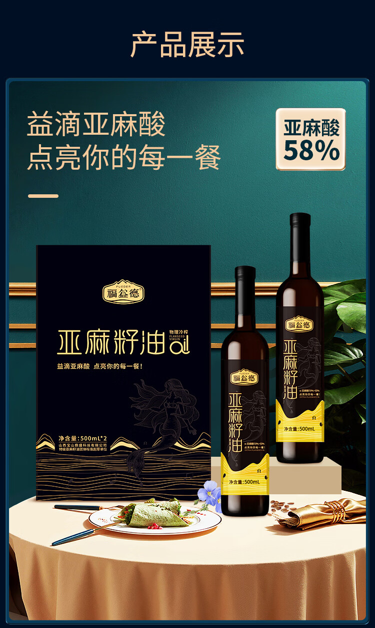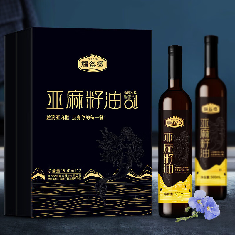 福益德 冷榨亚麻籽油 500ml×2瓶 食用油 一级冷榨初榨脱腊亚麻油 礼盒装 自营