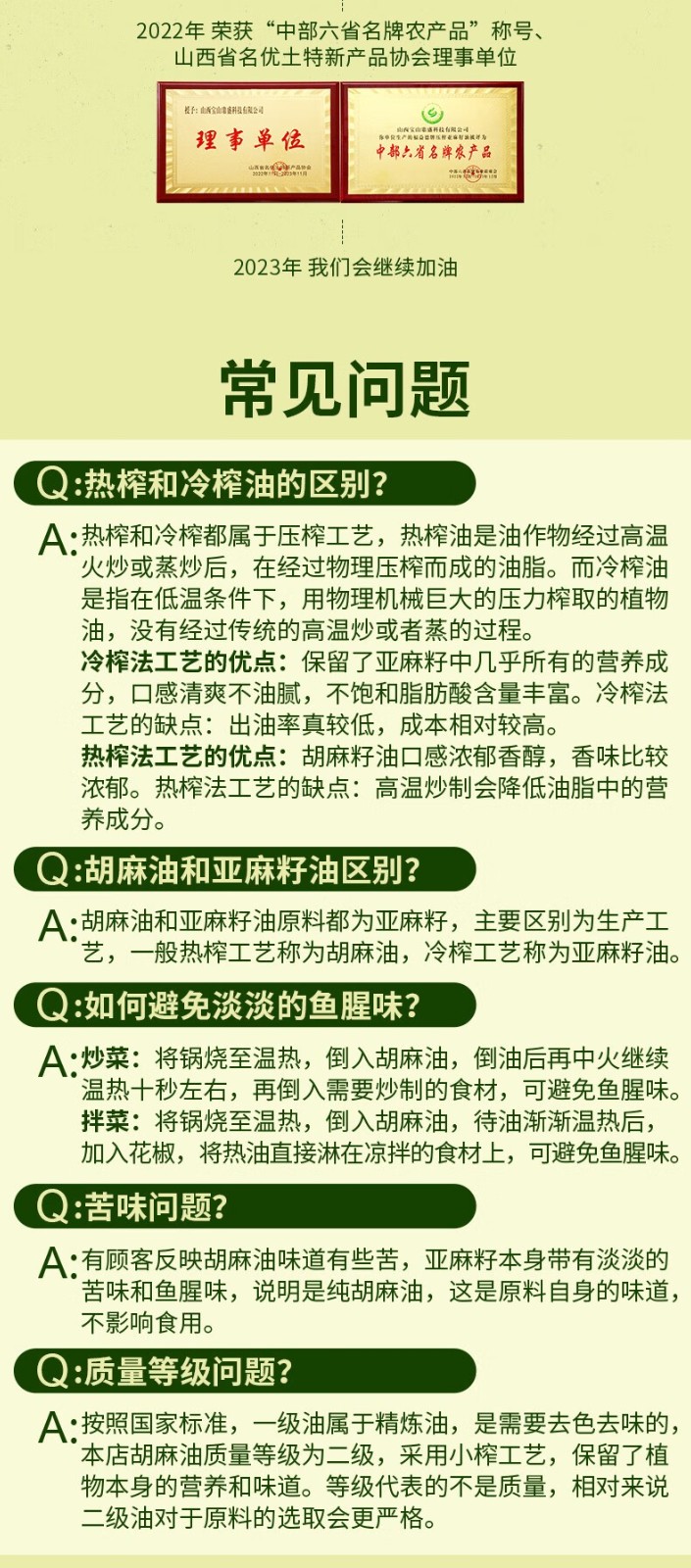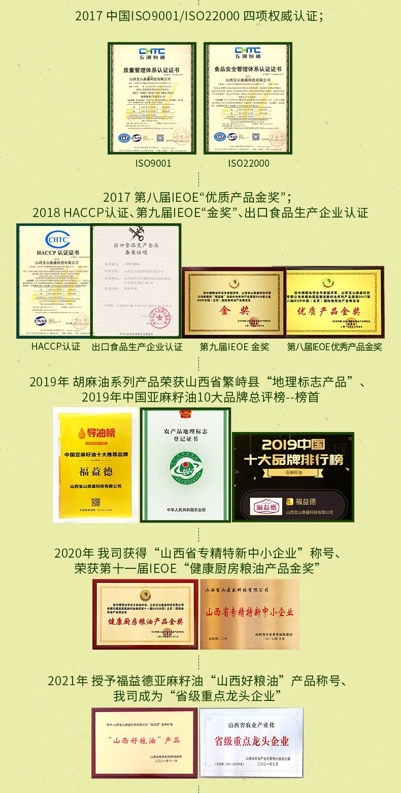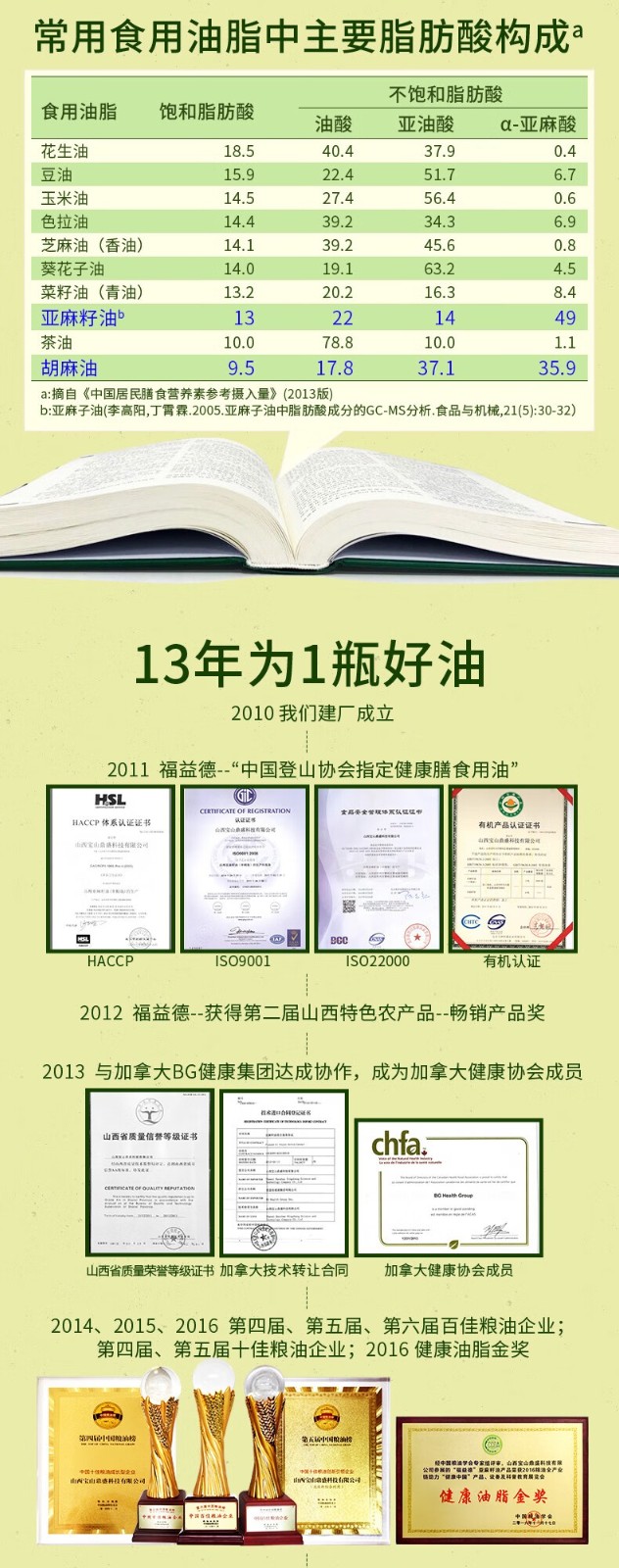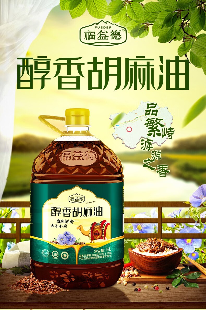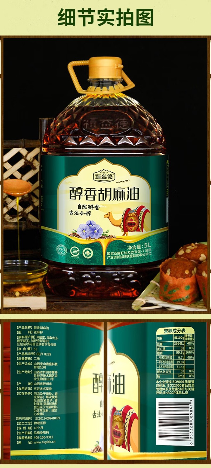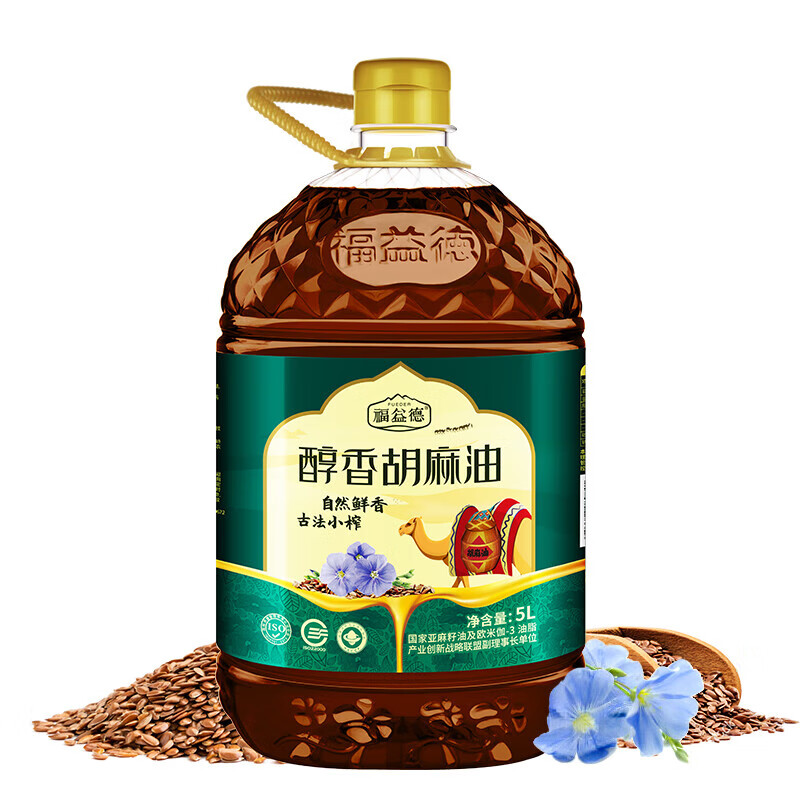 福益德 醇香胡麻油 5L×1桶 食用油 山西胡麻油 物理压榨纯亚麻籽油 自营
