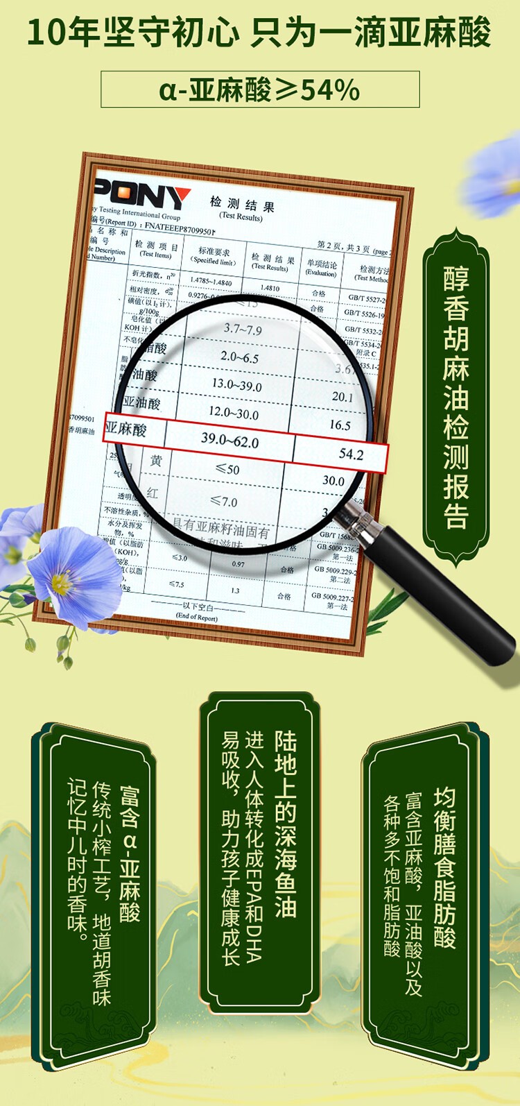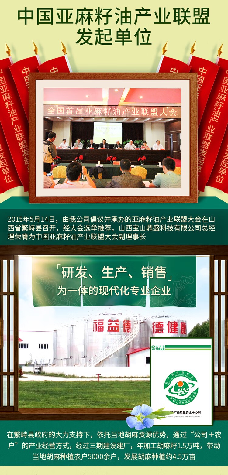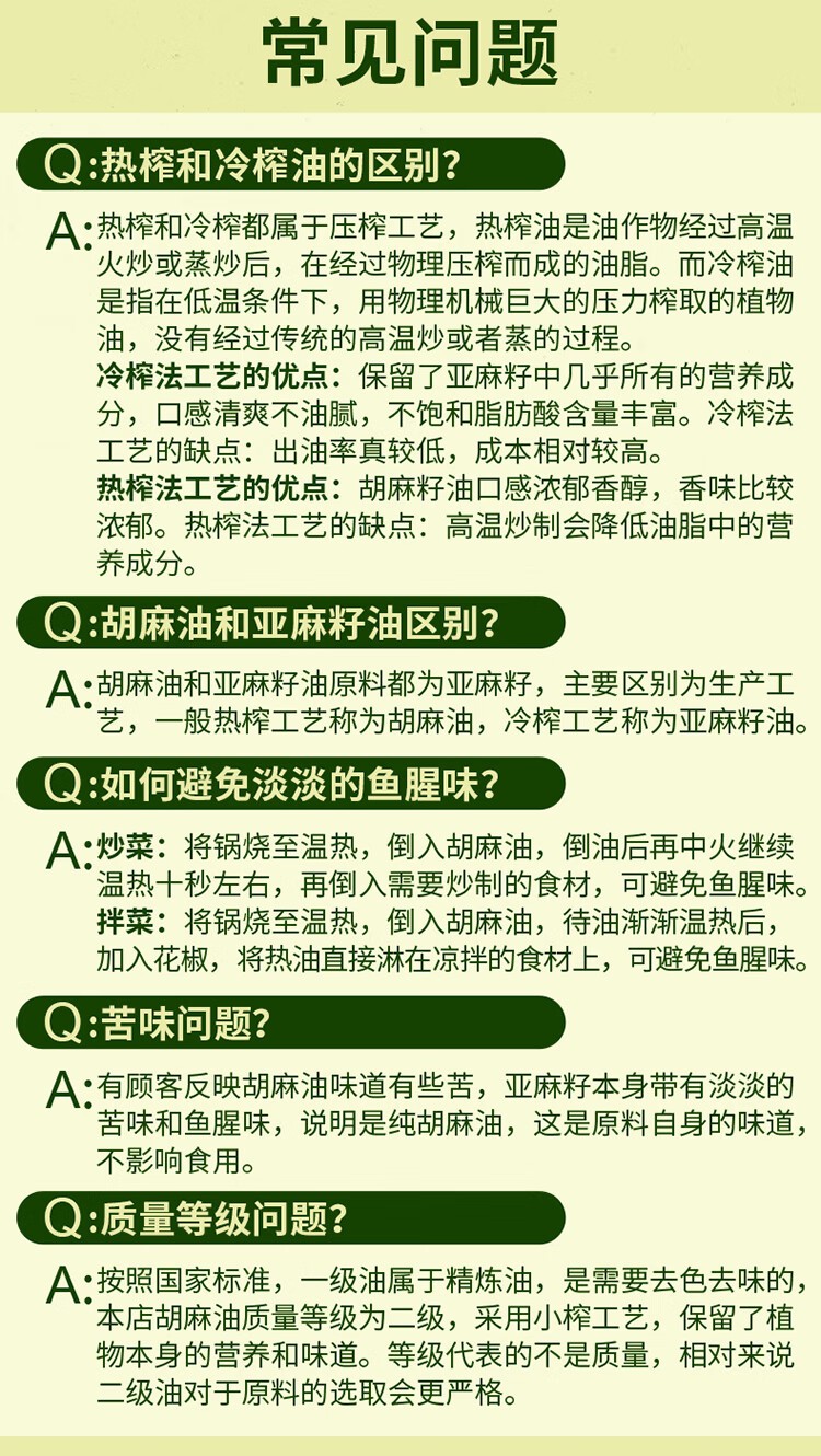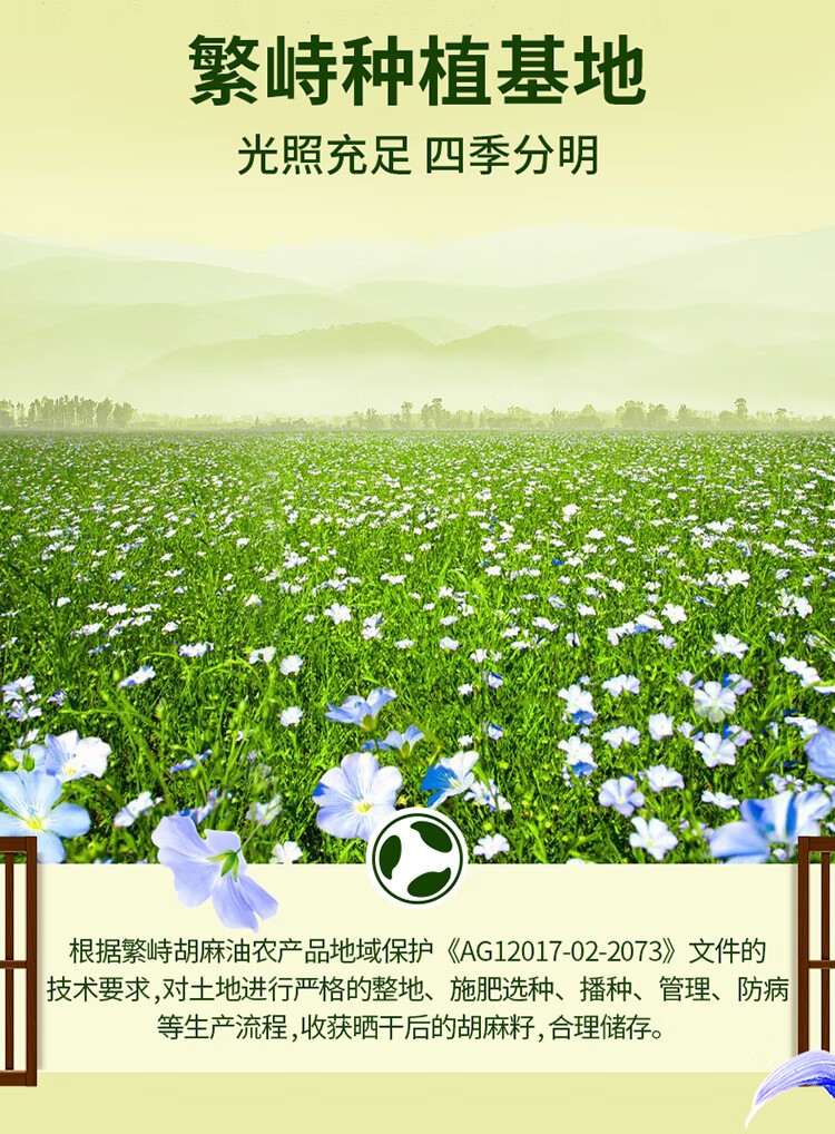 福益德 醇香胡麻油 1.8L×1桶 食用油 山西胡麻油 物理压榨纯亚麻籽油 自营