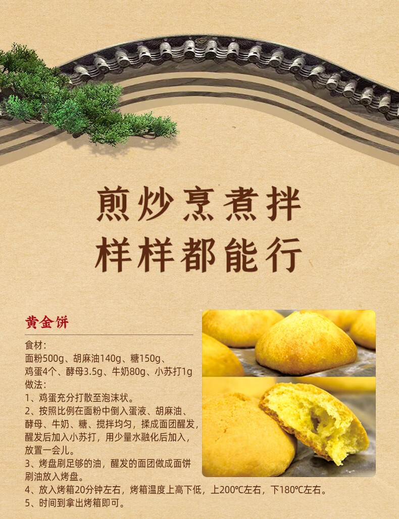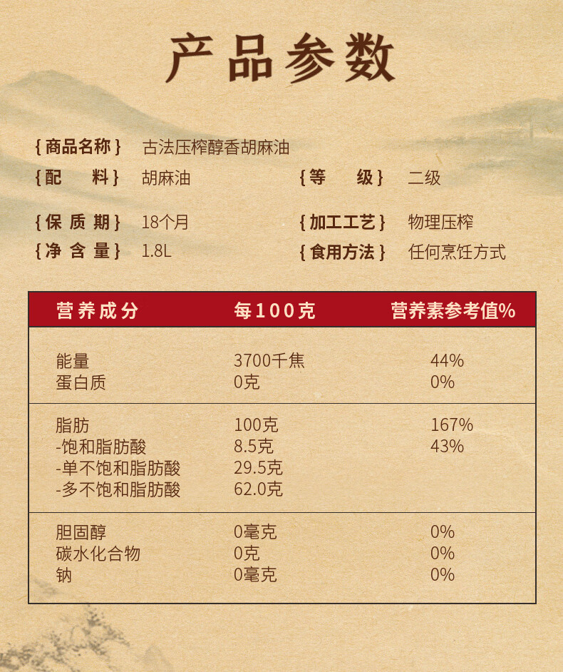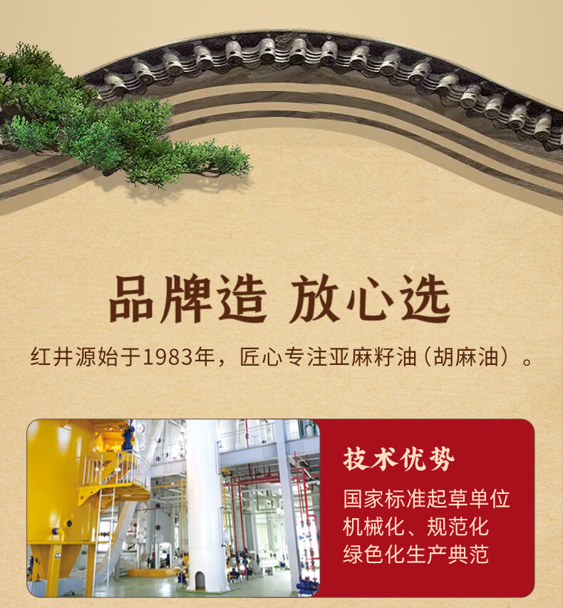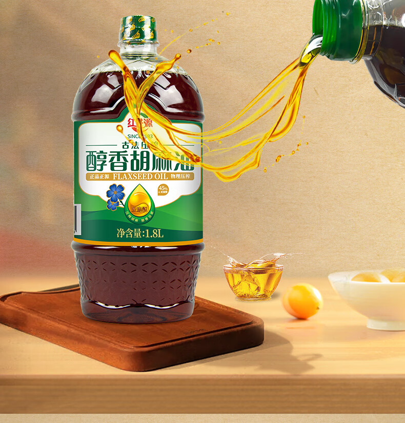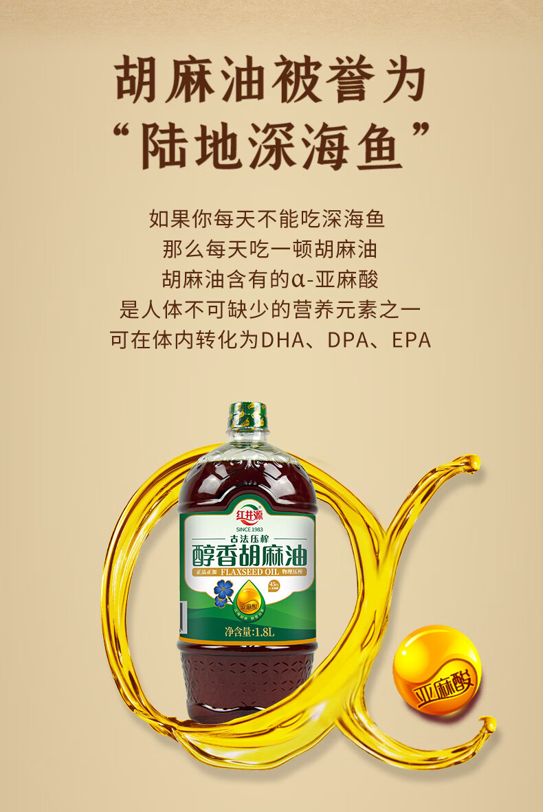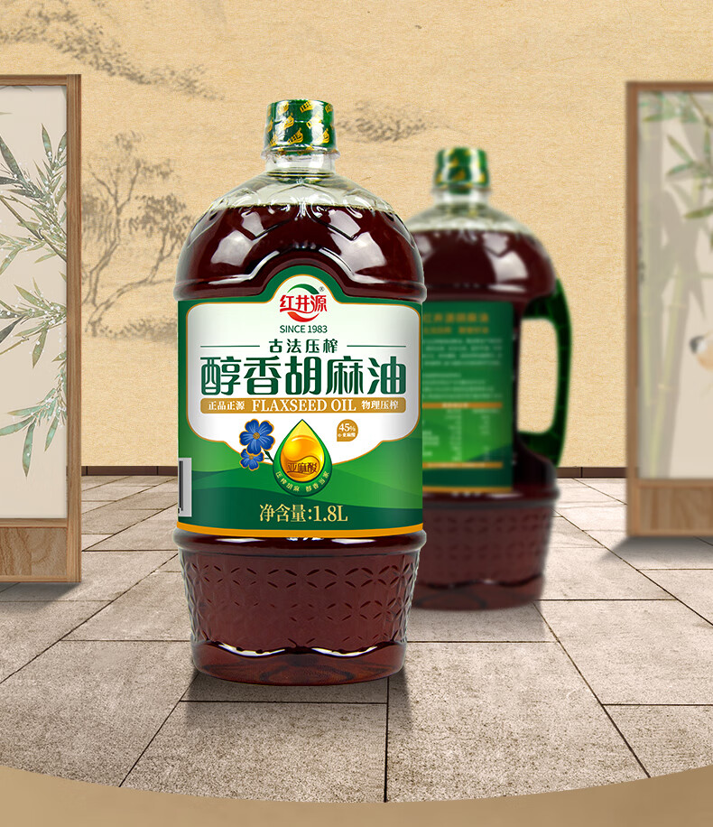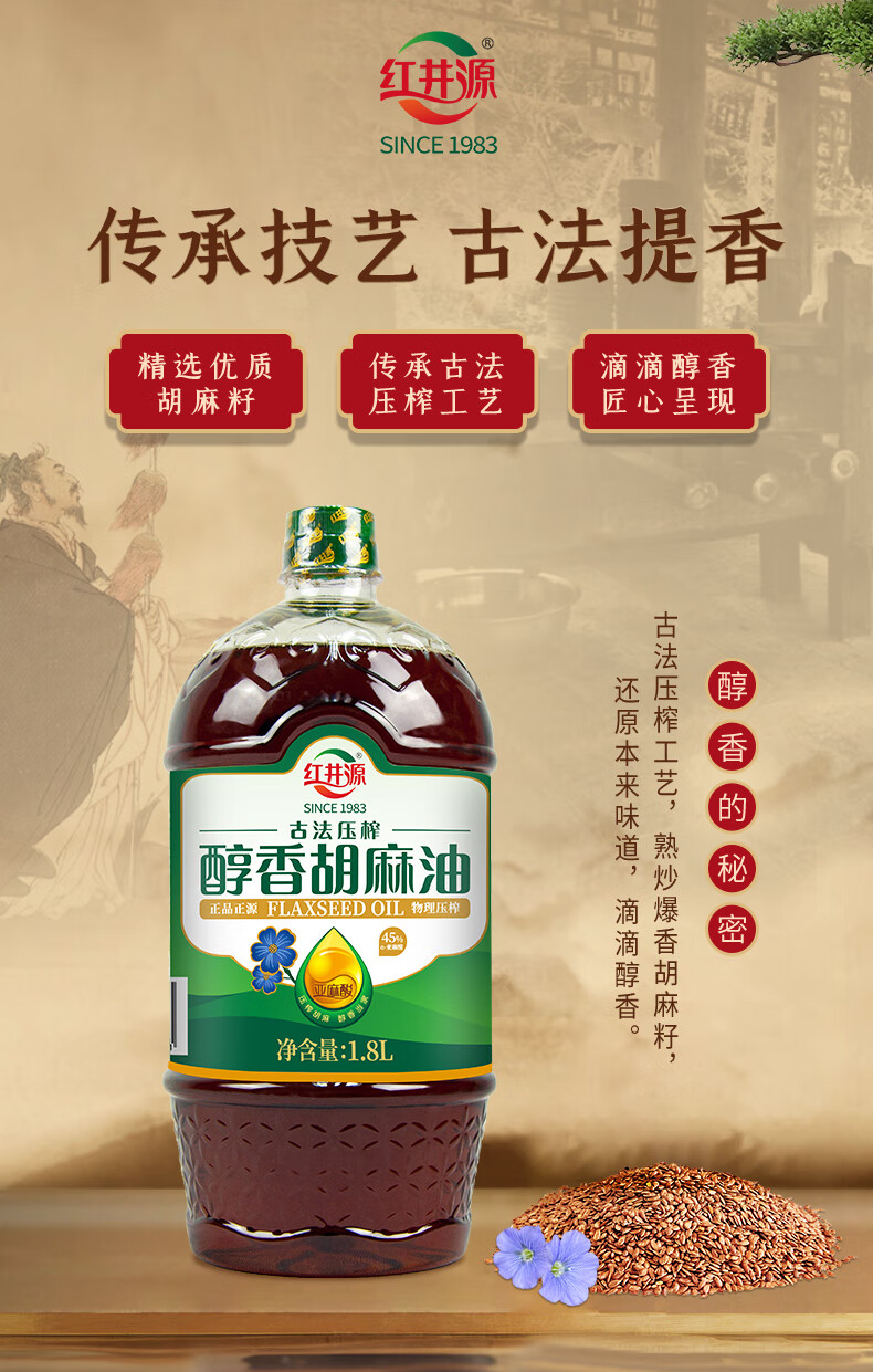 红井源 醇香胡麻油 古法压榨食用油 家庭炒菜食用油 胡麻油1.8L 自营