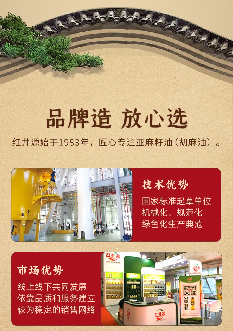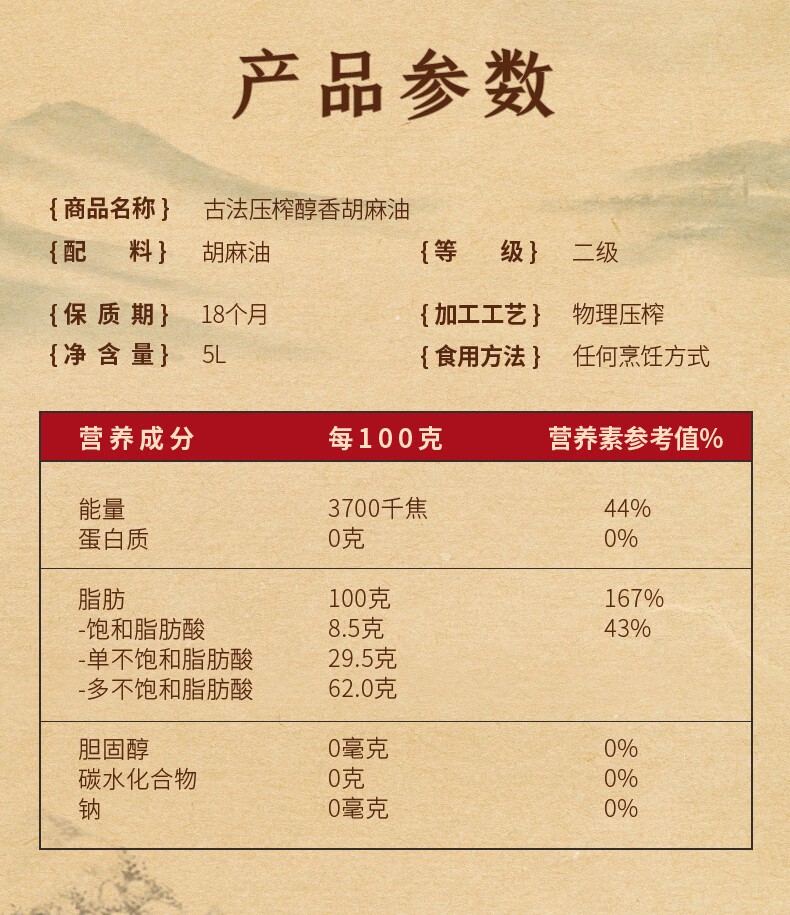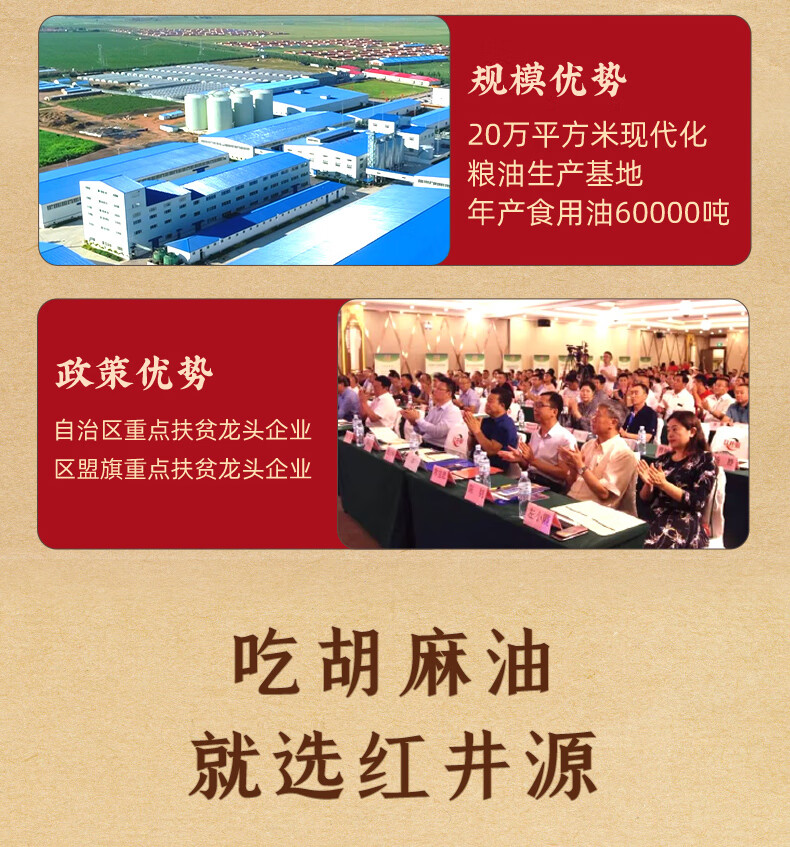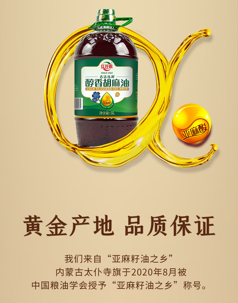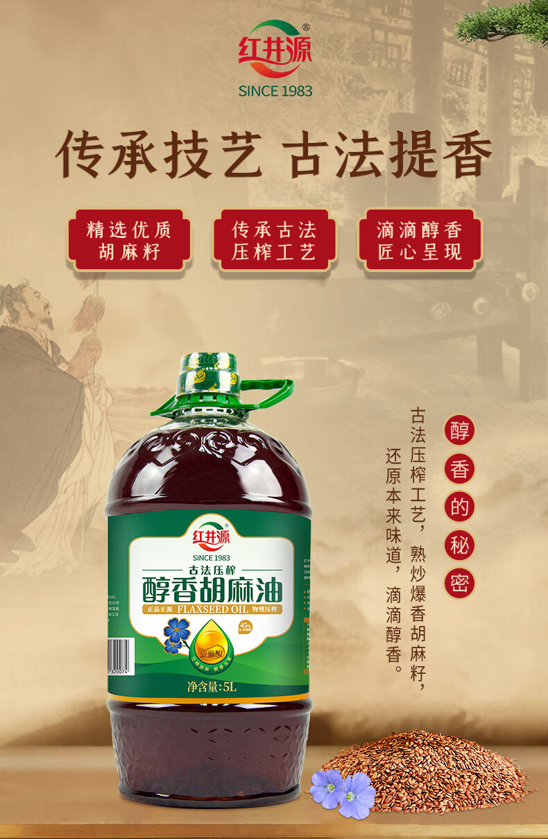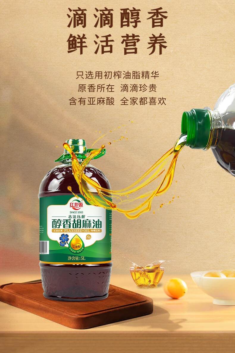 红井源 醇香胡麻油 古法压榨食用油 家庭炒菜食用油 胡麻油5L 自营