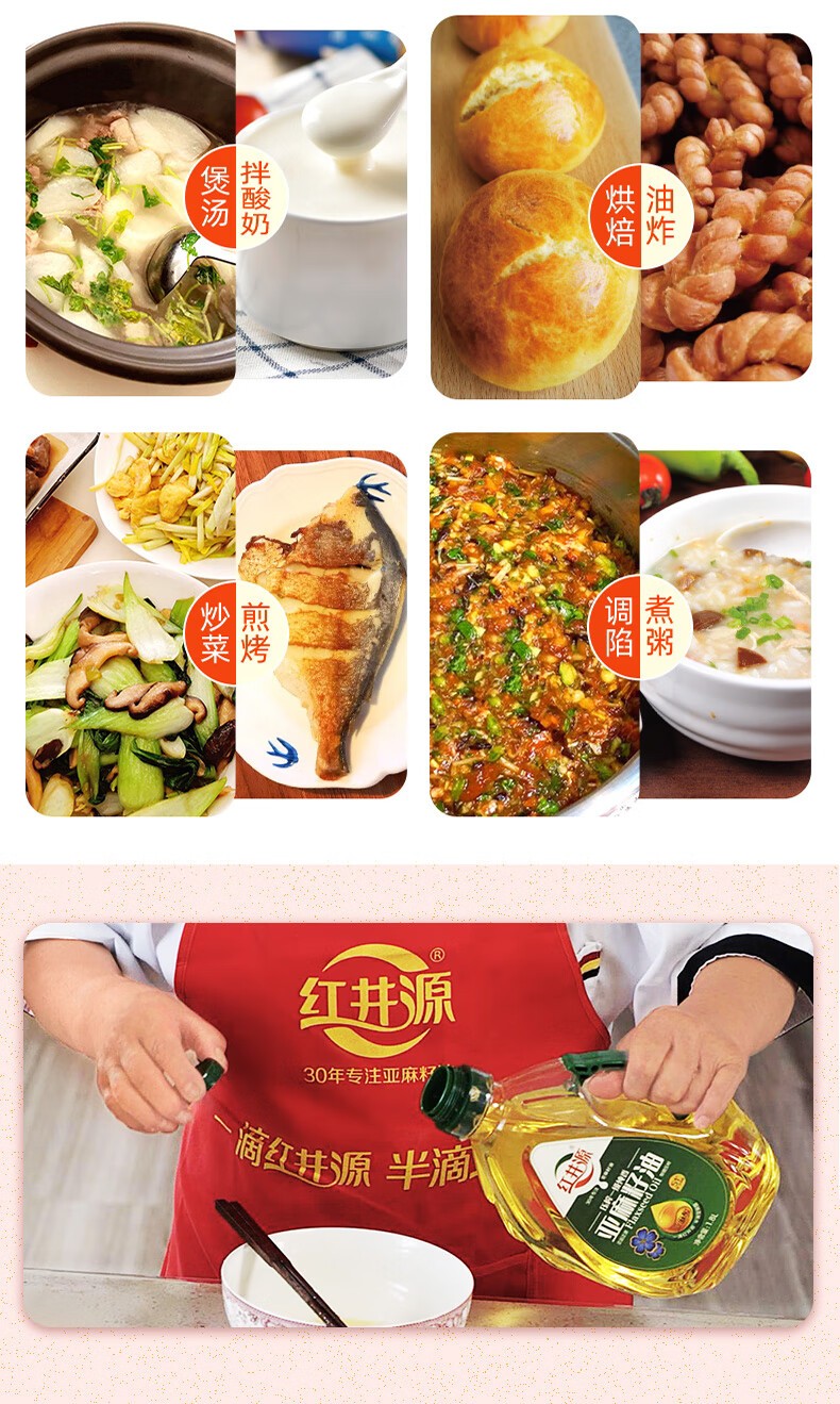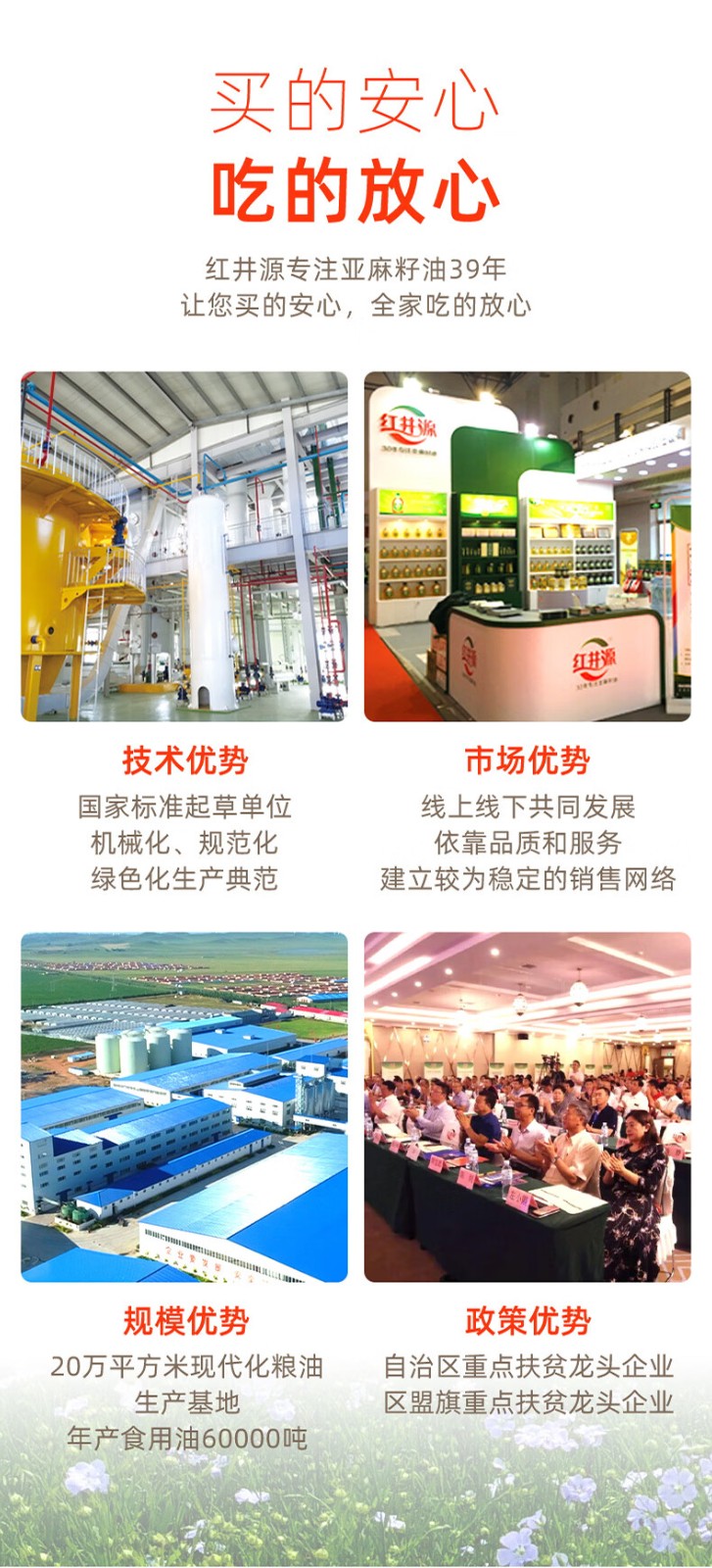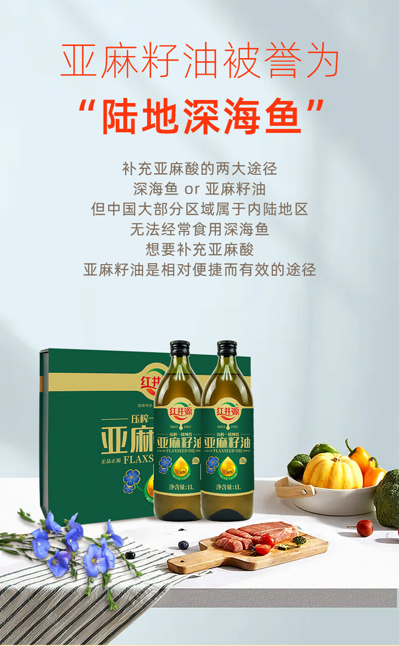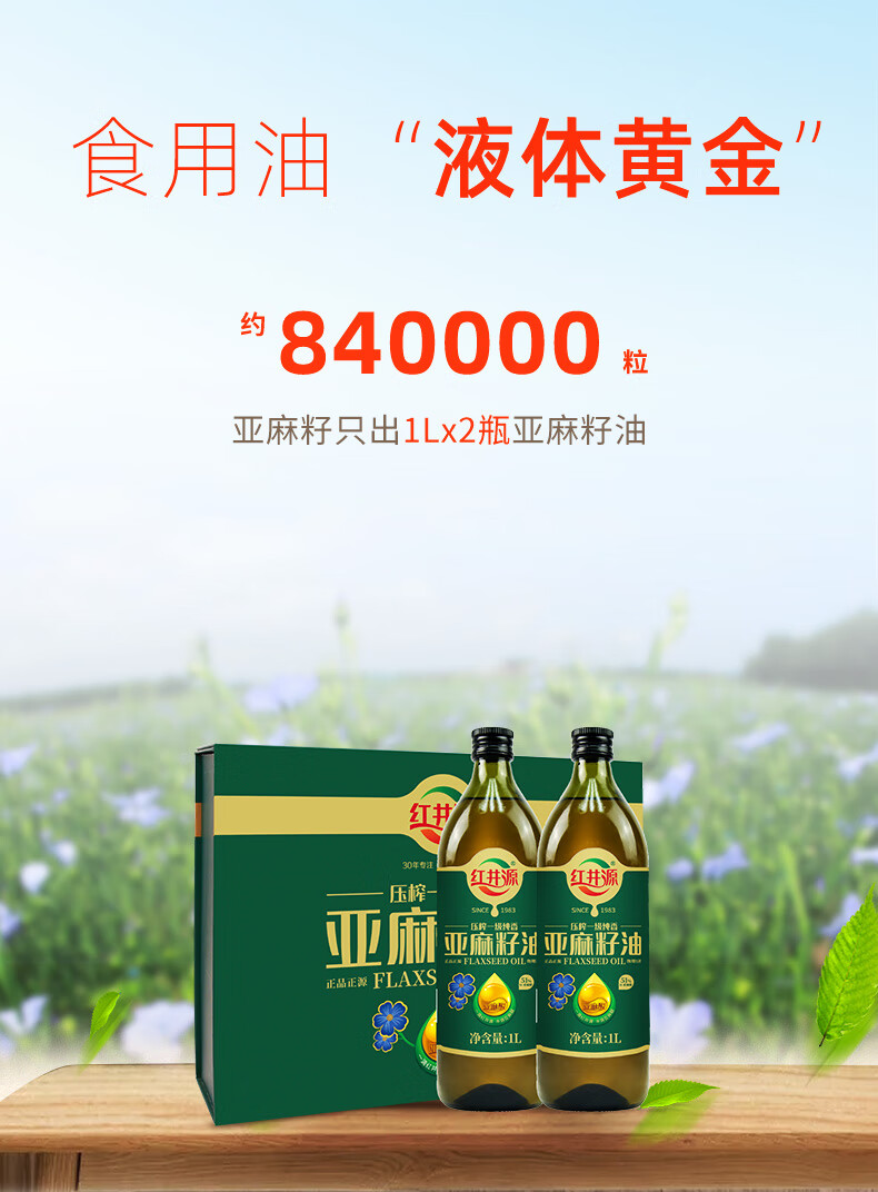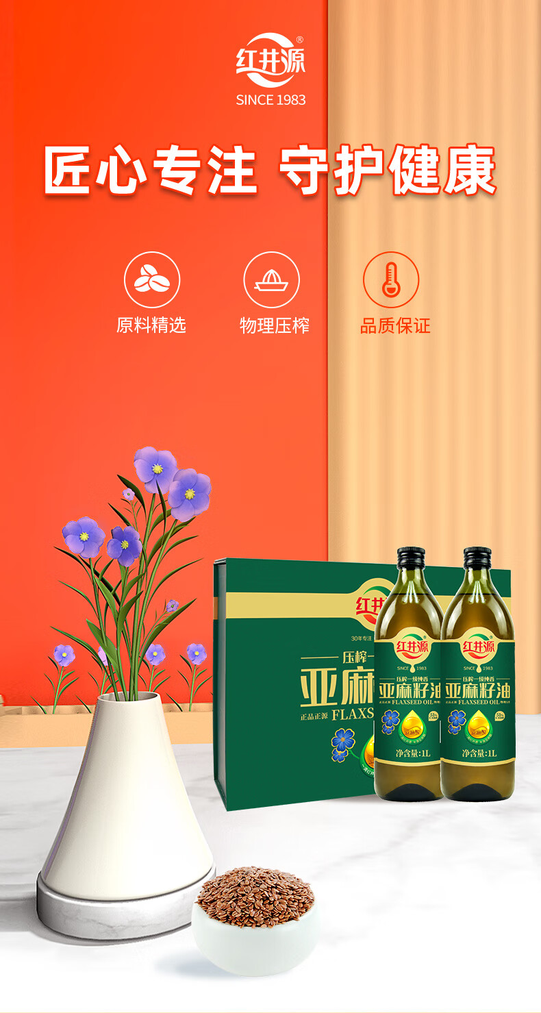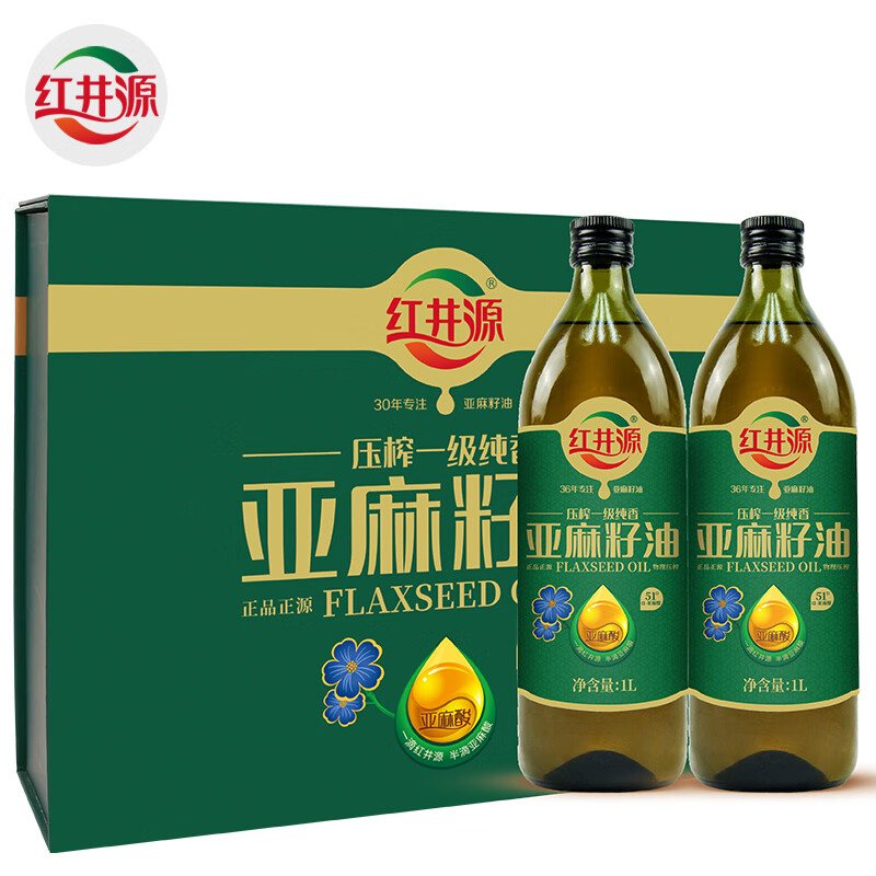 红井源 冷榨亚麻籽油礼盒装 过节送礼礼盒装 冷榨亚麻籽油礼盒 总容量2L 自营