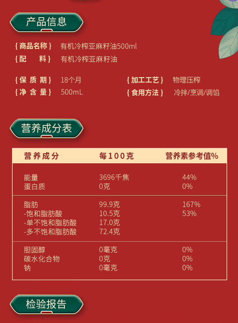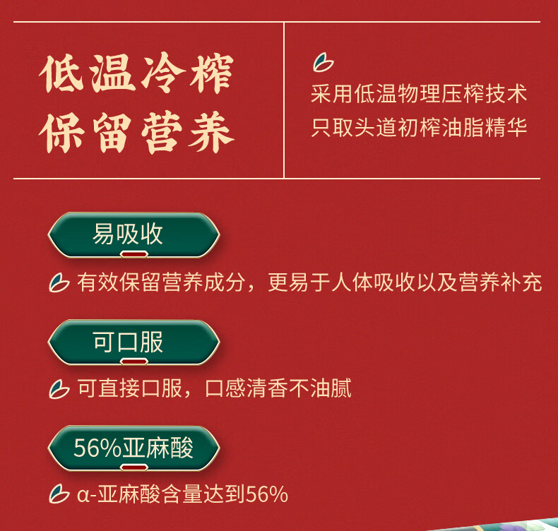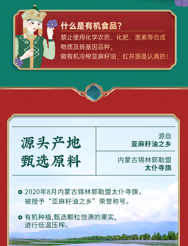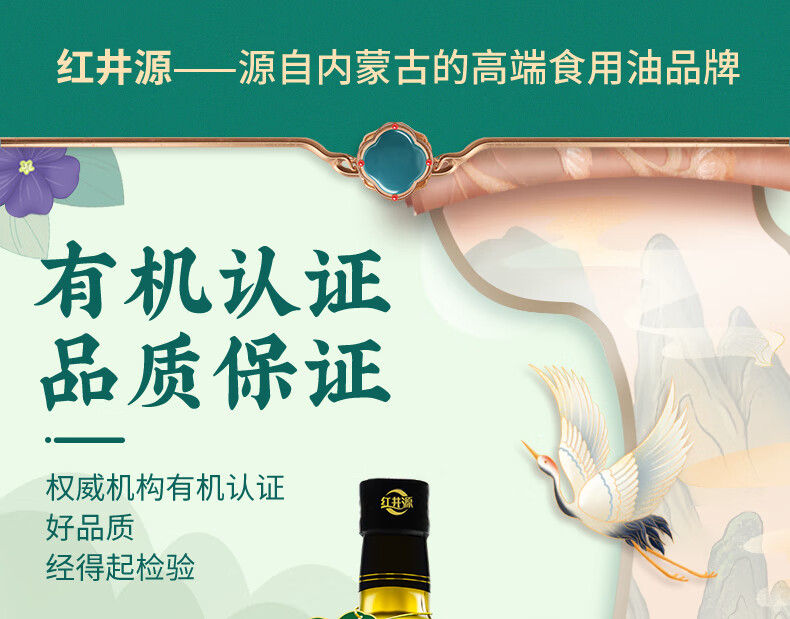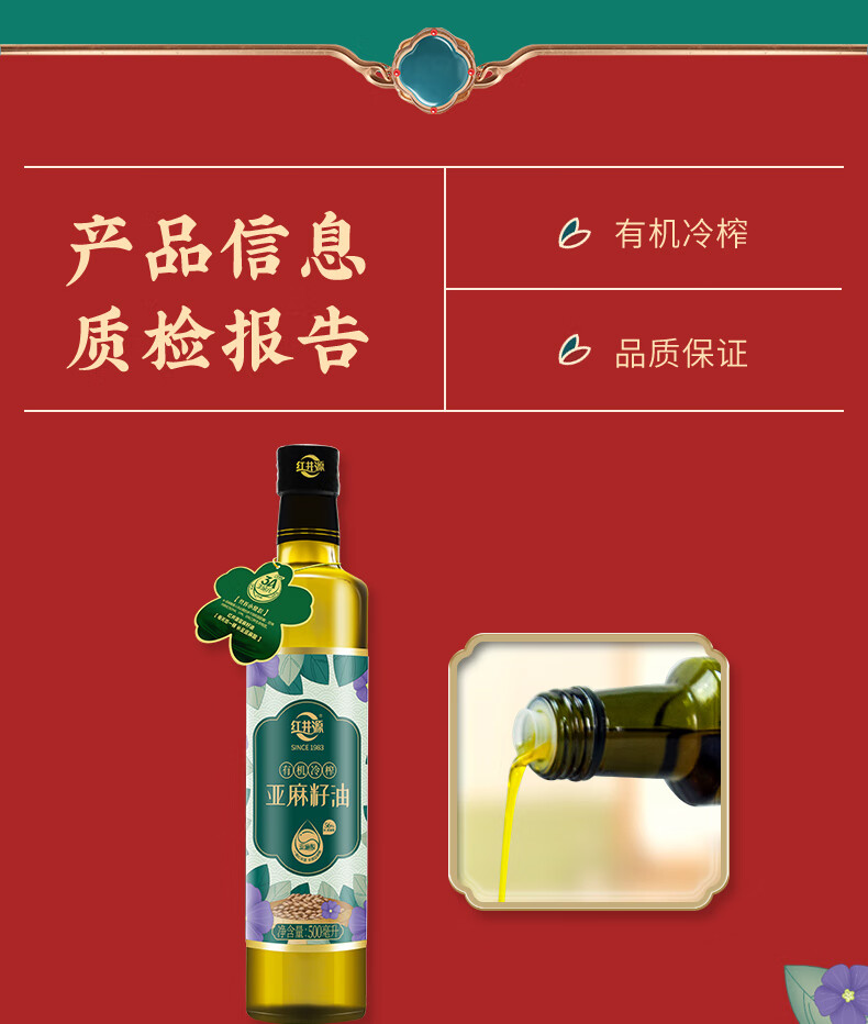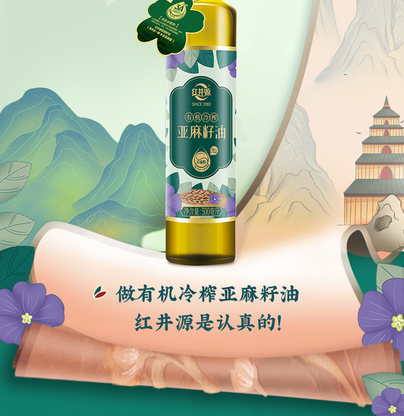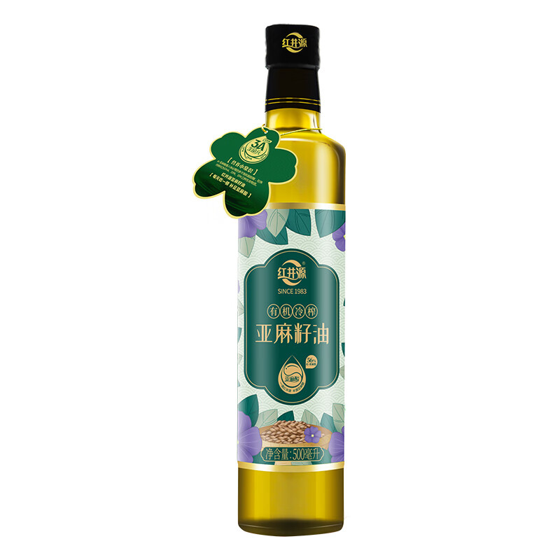 红井源 有机冷榨亚麻籽油 健康食用油 冷榨亚麻籽油500ml 自营
