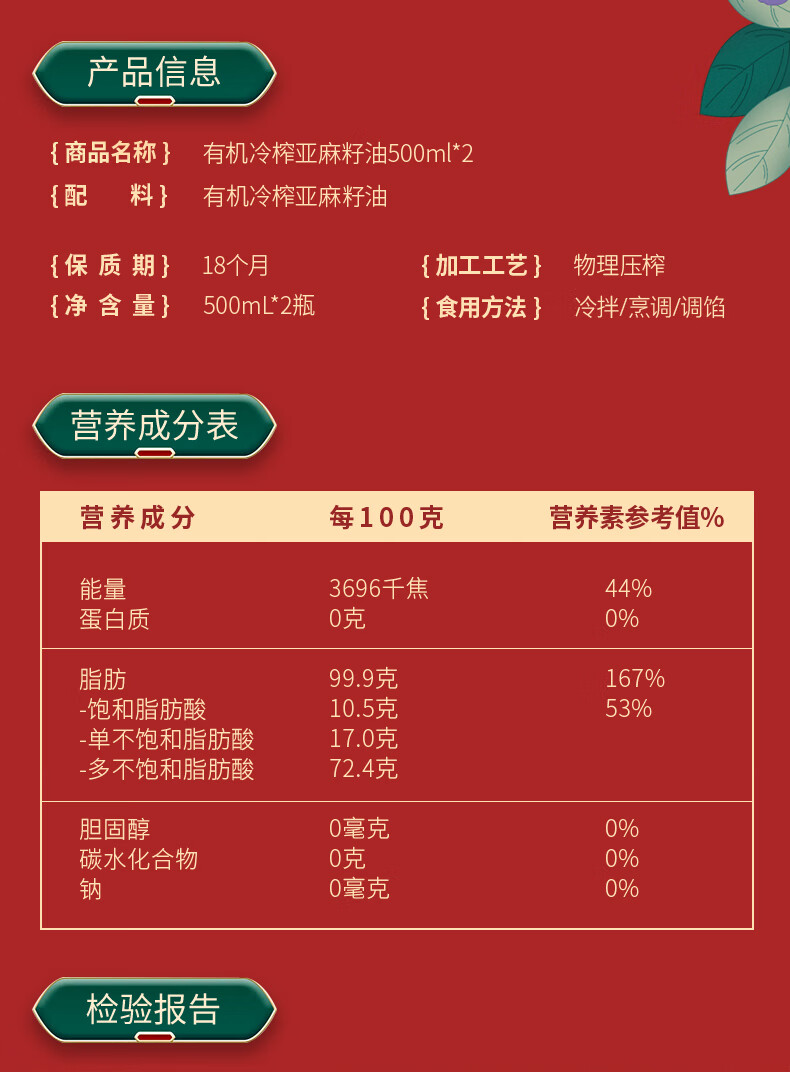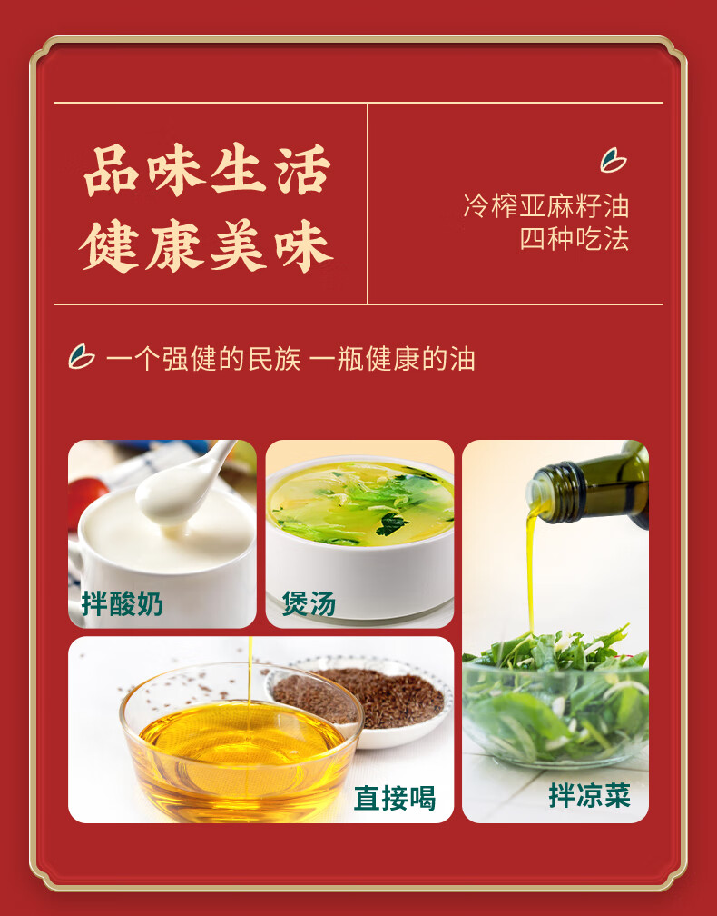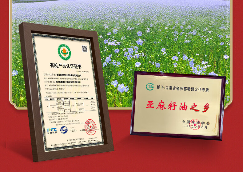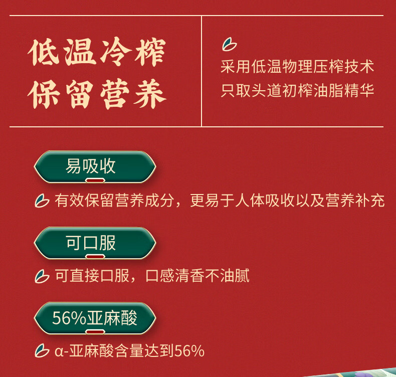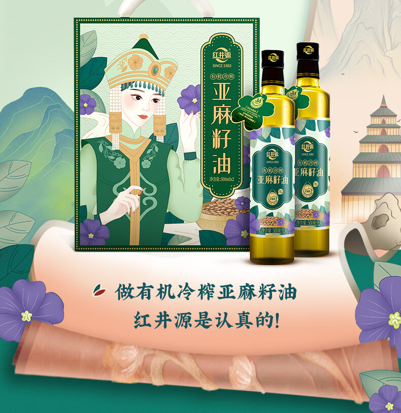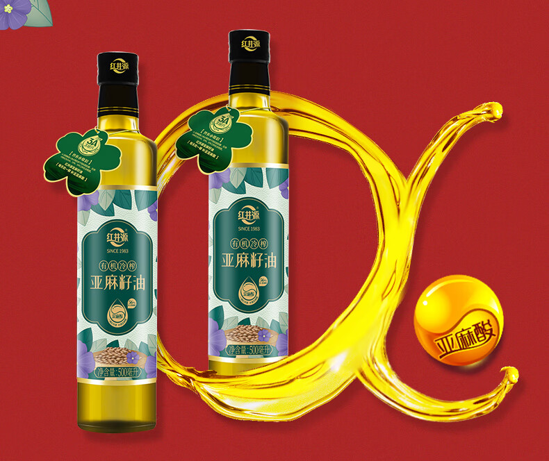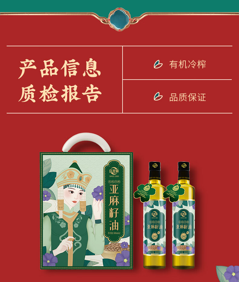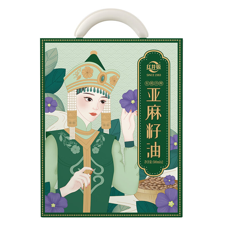 红井源 有机冷榨亚麻籽油礼盒装 过节送礼礼盒装 总容量1L 自营