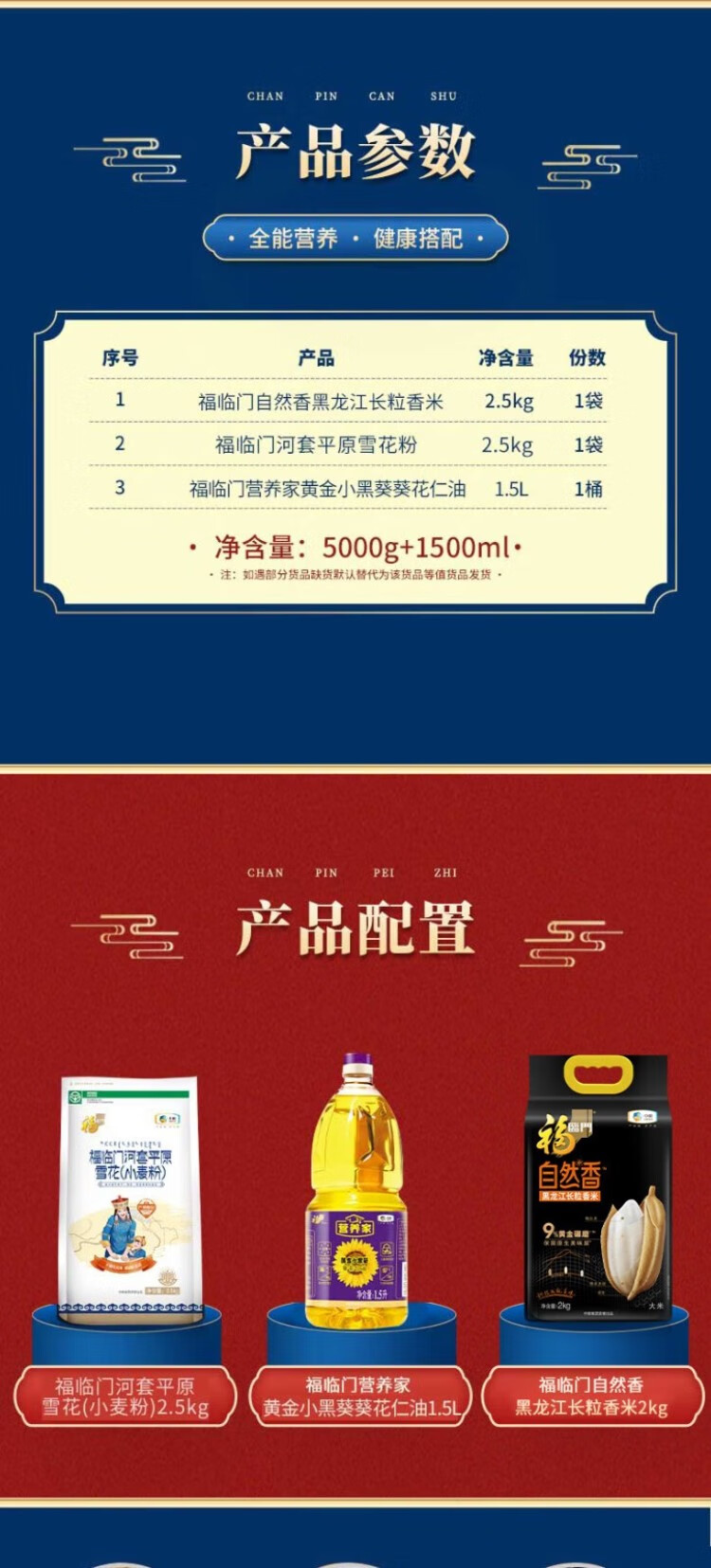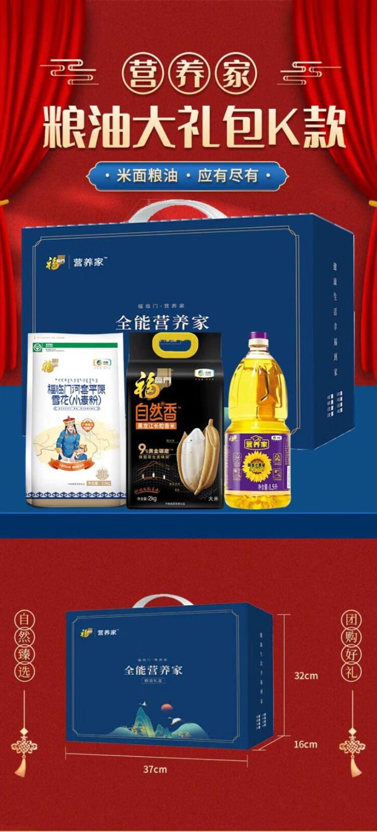 福临门 礼盒装节日送礼大礼包 营养家粮油大礼包B款 米面油4.5kg+1.5L 自营