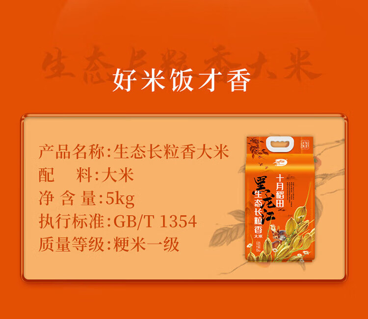 十月稻田 生态长粒香大米 米香清新 颗粒圆润饱满大米 5kg 自营
