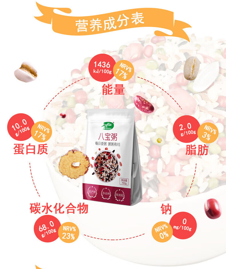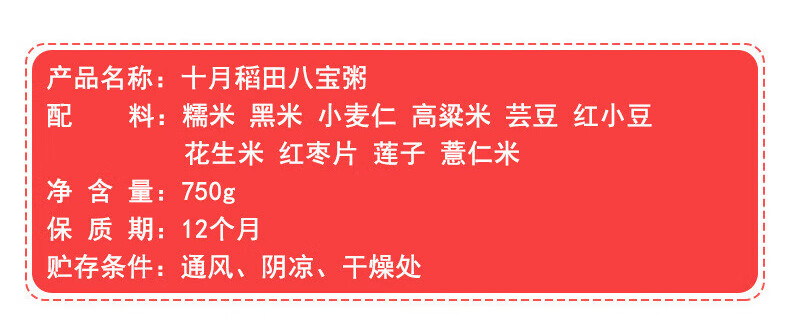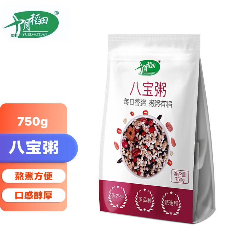 十月稻田 八宝粥 物理粗加工 原色原香 搭配均衡 营养早餐八宝粥 750g×2袋 自营