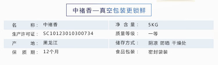 中褚 长粒香米 黑龙江长粒香大米 大米长粒香真空包装 5kg 自营