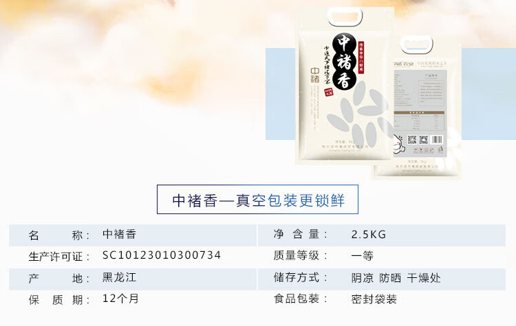 中褚 香米黑龙江长粒香大米 东北大米长粒香2.5kg真空装 自营