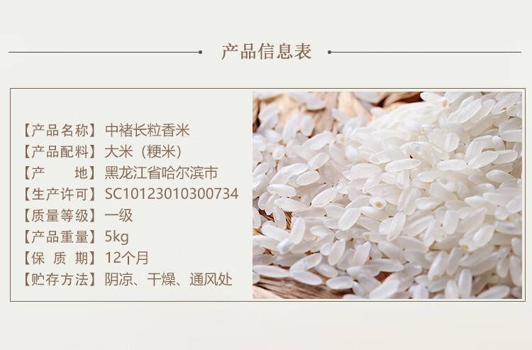 中褚 长粒香米 东北黑龙江大米 大米长粒香真空包装 5kg 自营