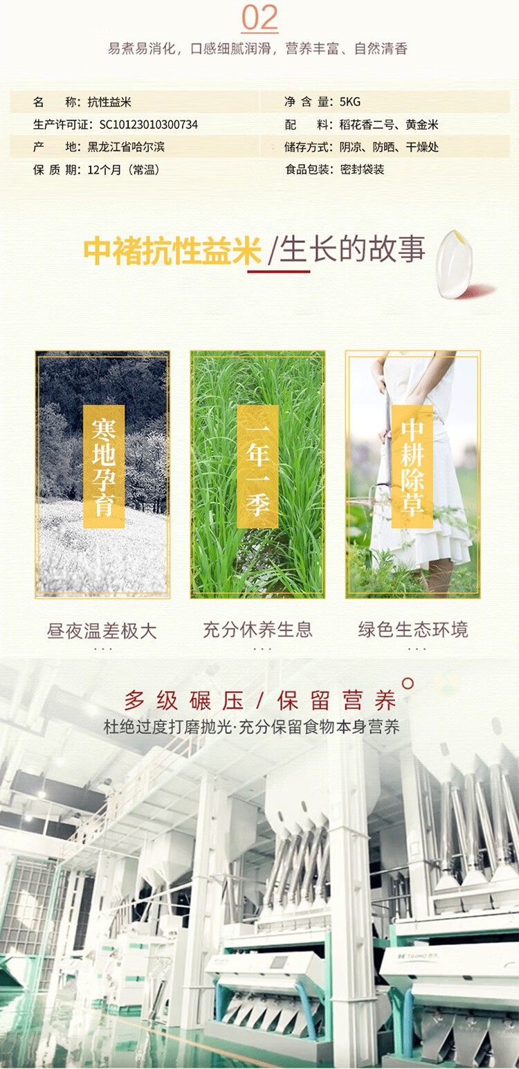 中褚 东北黑龙江稻花香2号 抗性益米 东北大米 极寒孕育 5kg 自营