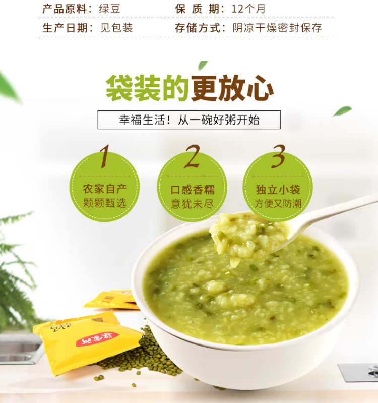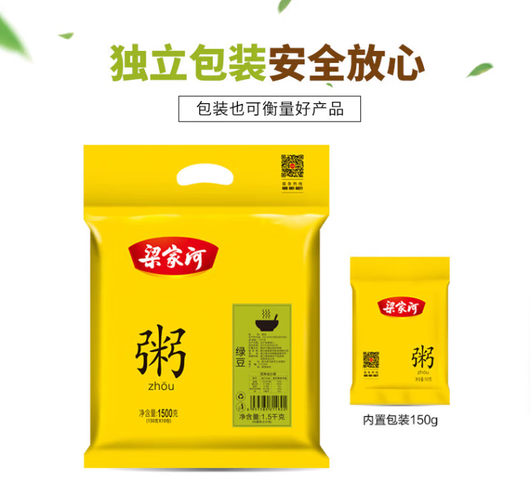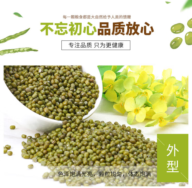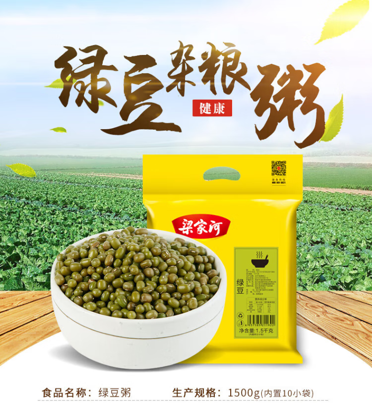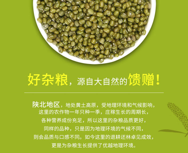 梁家河 农家长粒绿豆 粮油米面五谷杂粮颗粒均匀粗粮豆子1.5kg 自营
