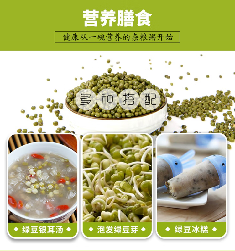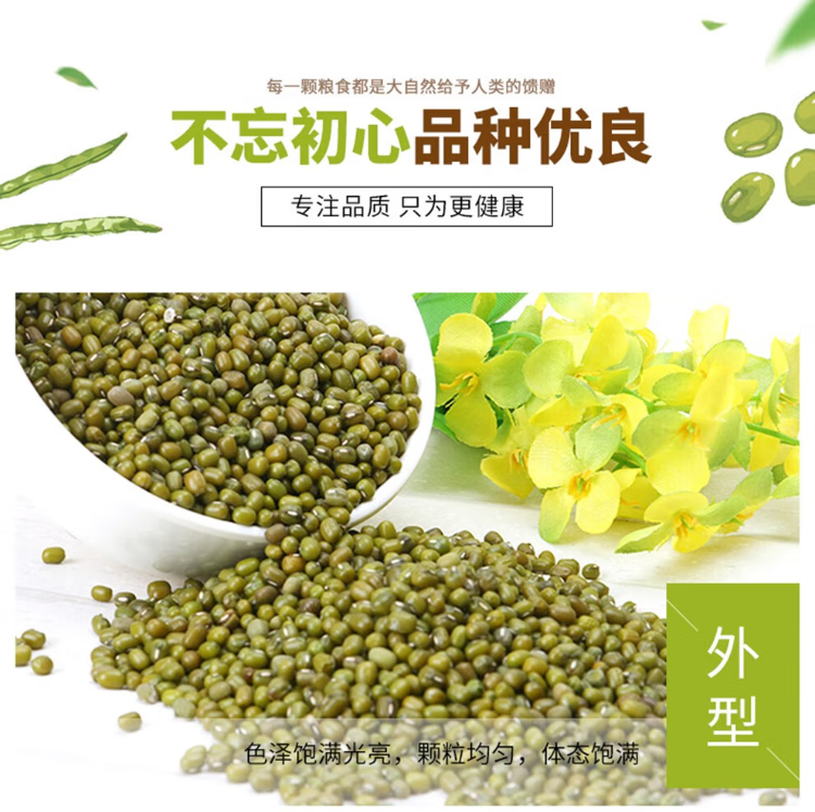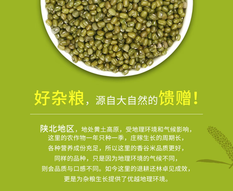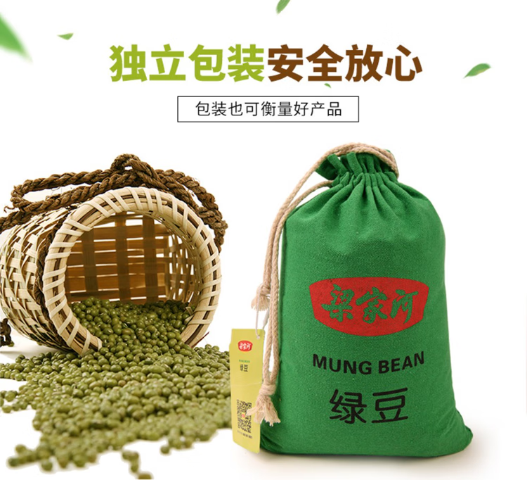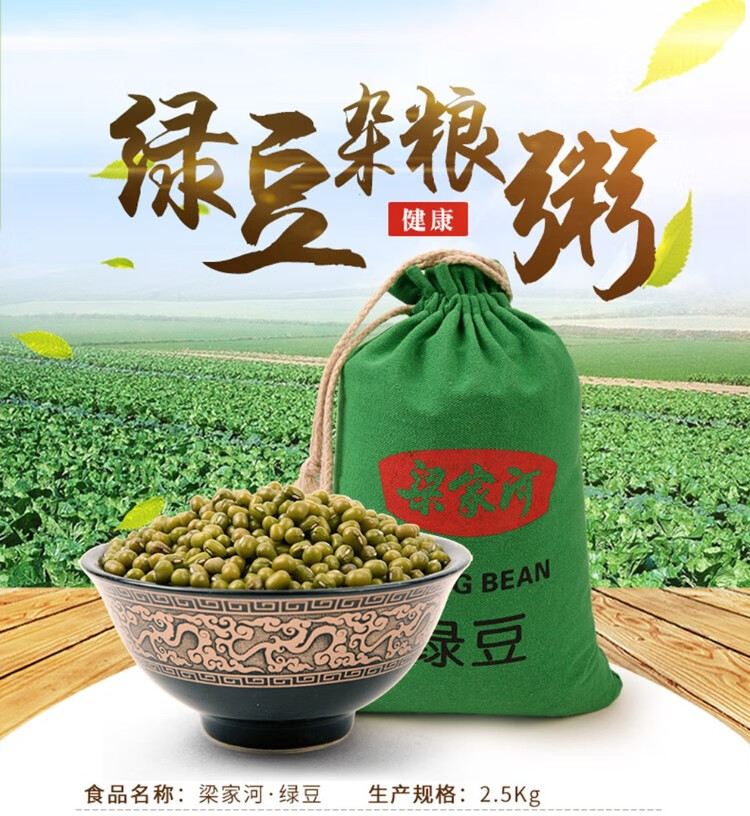 梁家河 去皮绿豆布袋农家长粒脱皮绿豆颗粒饱满均匀五谷杂粮粗粮豆2.5kg 自营