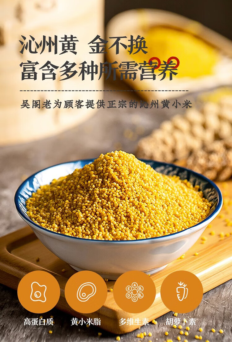 吴阁老 沁州黄小米 粗粮五谷米杂粮粥 山西小米粥有机小黄米袋装500g 自营